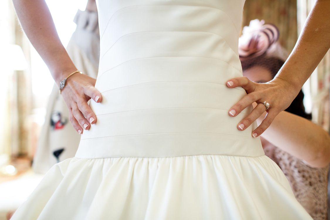Tiene debajo del vestido 6 maravillosas capas de tul más el forro que le dan un volumen que realza la figura y la silueta de la cintura.