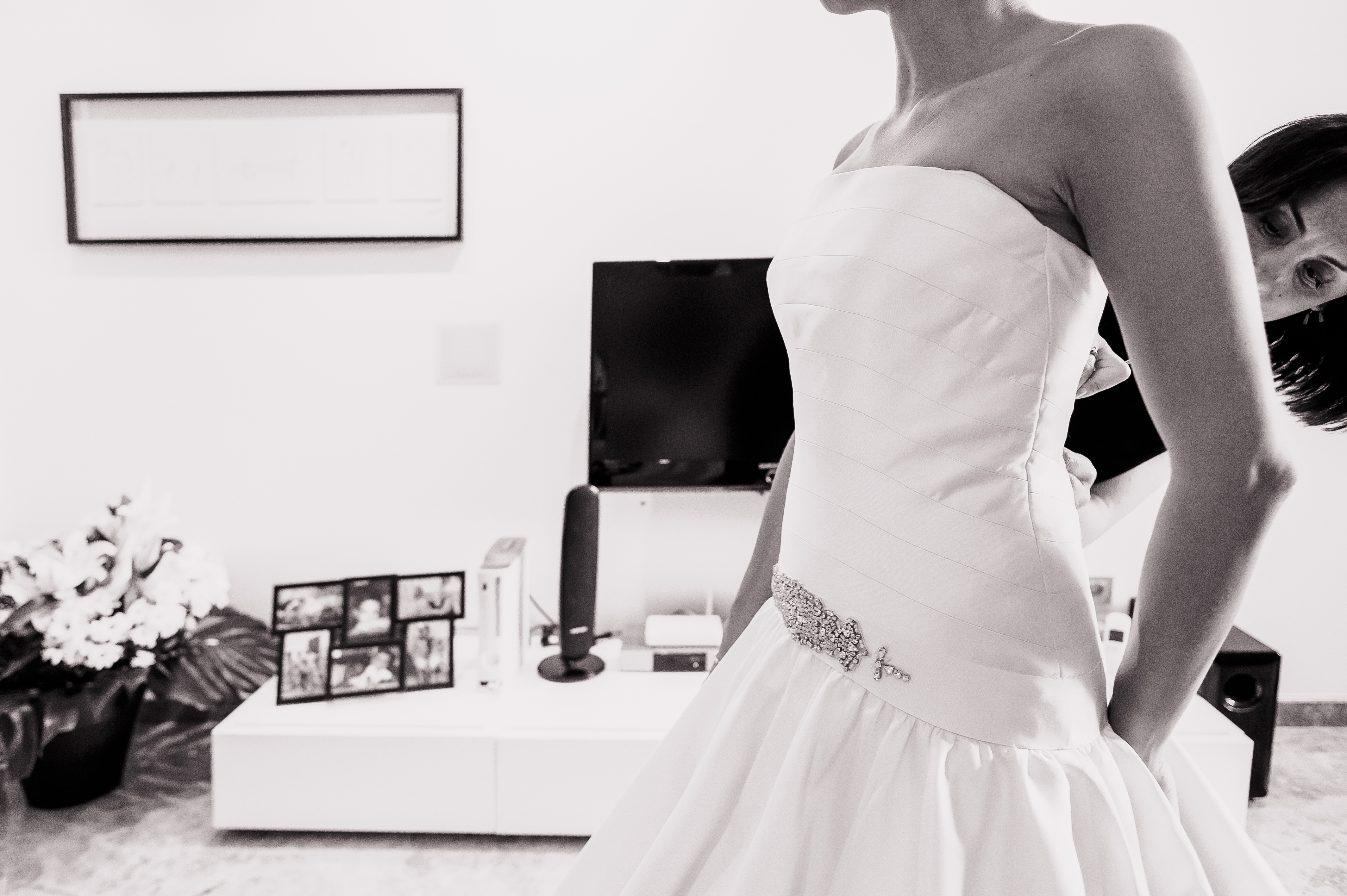 Modelo Preferida de julio del 2012. El vestido esta impecable, lavado y sin ningun desperfecto. Lleva añadido un cinturon en el corte de la cadera. La tela del vestido es de micado, de alta costura y calidad. Color entre crema y champagne. Tiene retoques para una talla 36-38.