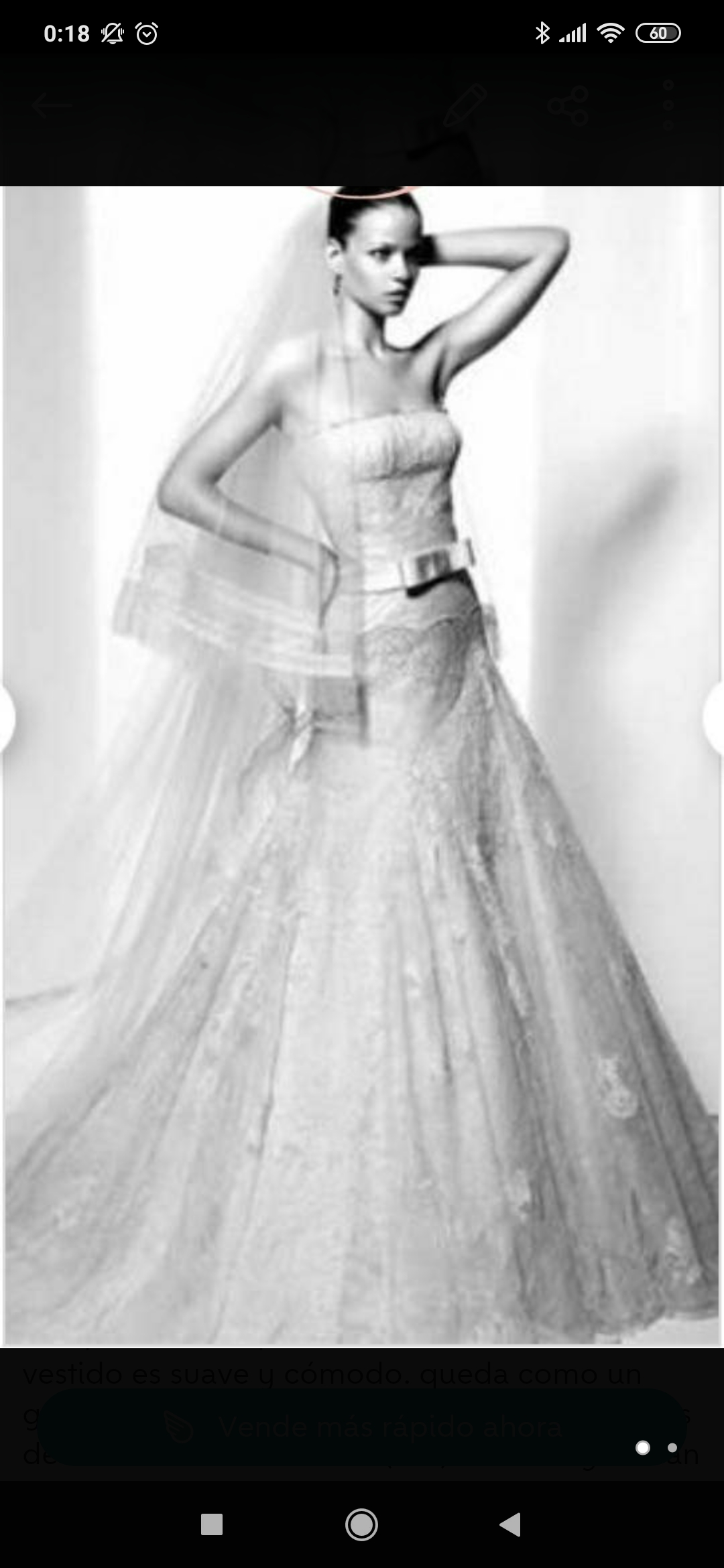 Vestido de novia de Chantilly de seda Manuel Mota. Modelo Canigo. Año 2008. Comprado en Pronovias Granada. Puesto el ratito de la ceremonia. Regalo velo liso. Costó 4.200 euros sin velo ni can can. Conservó la factura de todo. Era palabra de honor y se añadieron tirantes del mismo encaje. Es una belleza. Una Joya