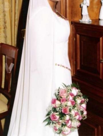 Vestido novia estilo medieval. Manga gasa ancha y adornos florales. Limpio y en perfecto estado. Con funda para transportarlo.