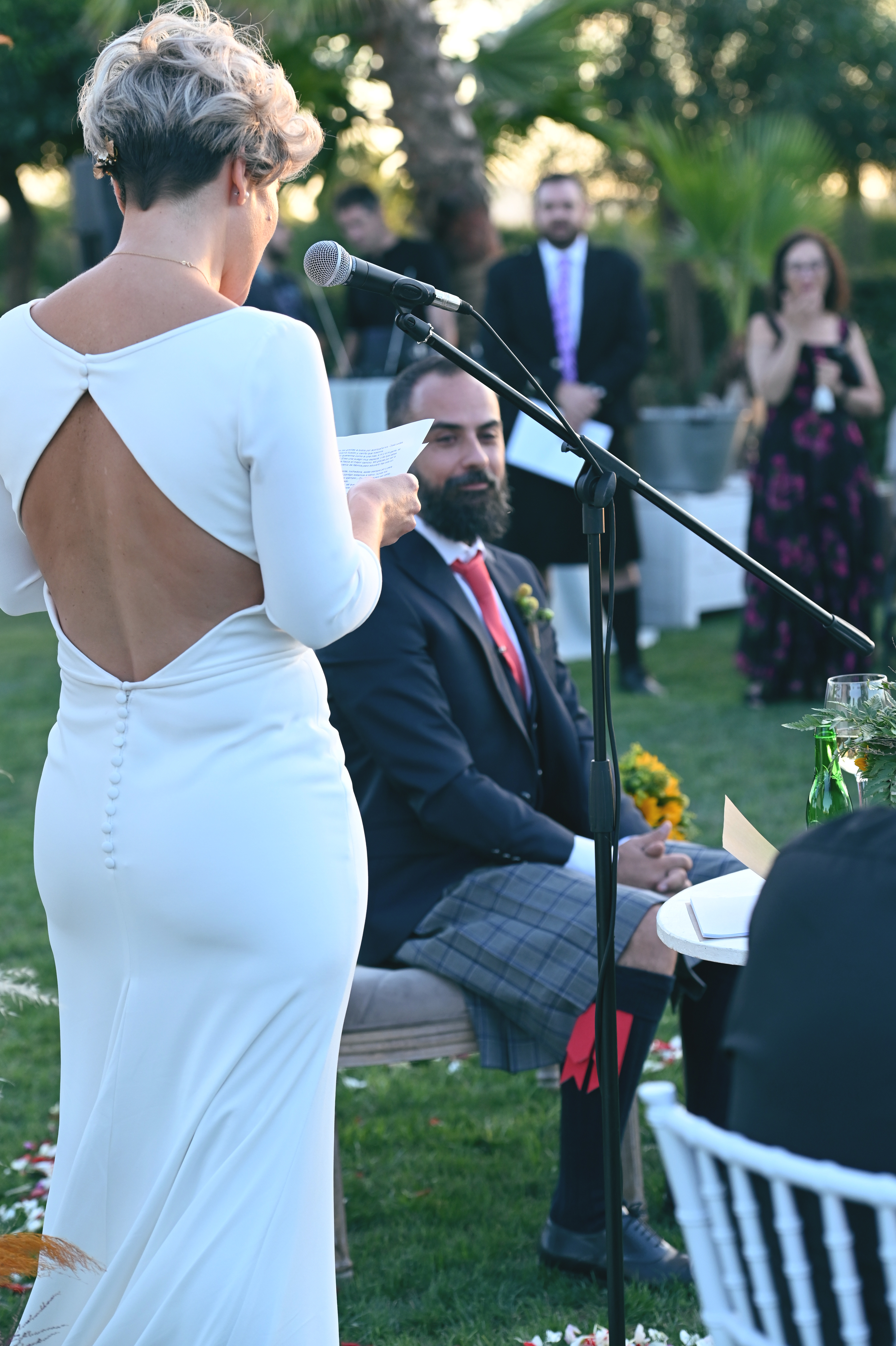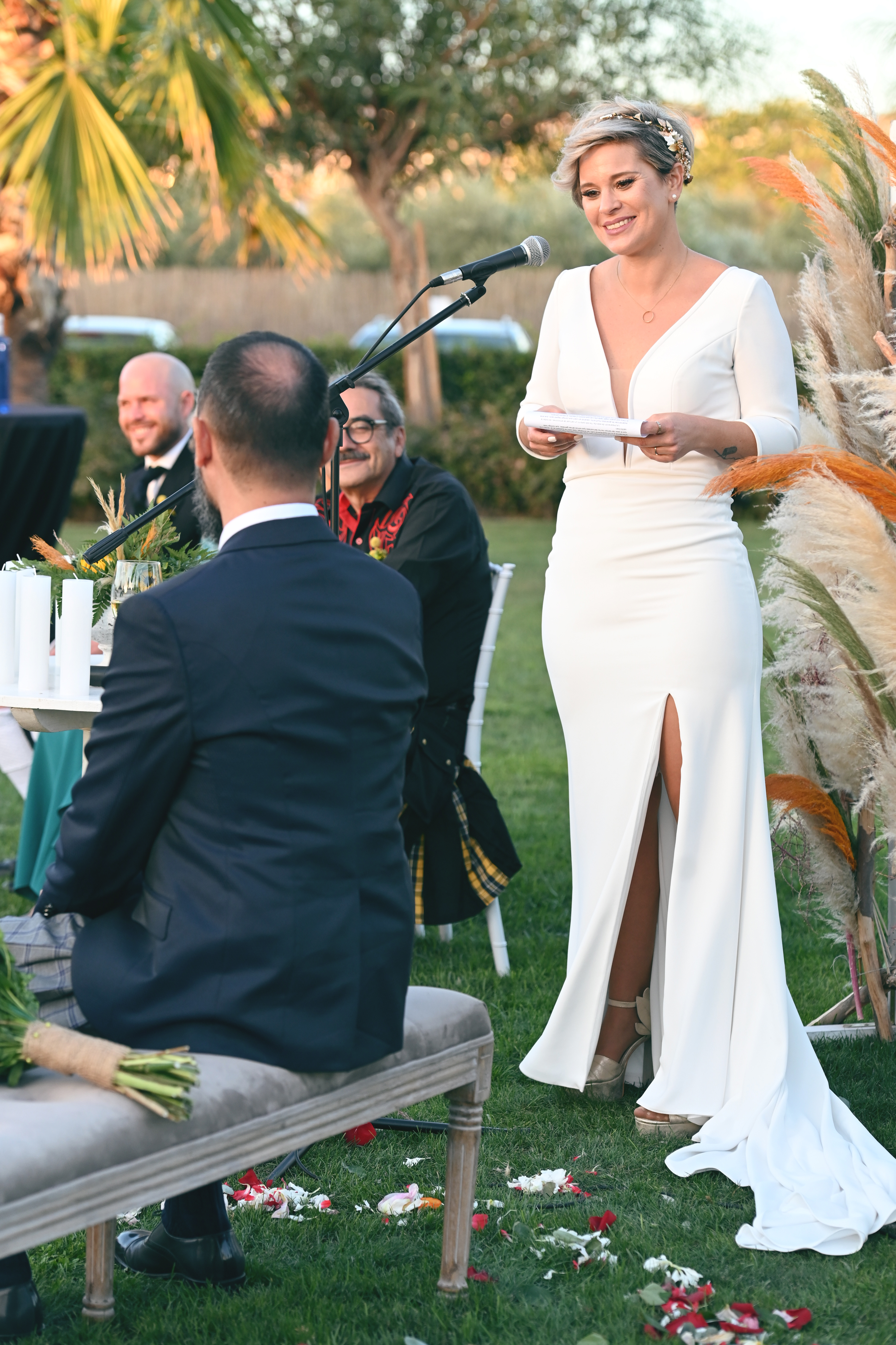 Vestido de corte sirena, con escote profundo y manga larga (le arreglé la manga como se puede ver en las fotografías para que quedará 3/4 en vez de larga del todo). Espalda descubierta y apertura lateral en la falda.