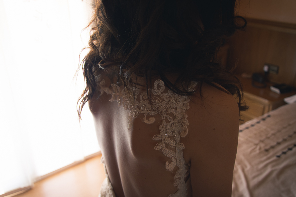 Vestido marca oronovias 2016. Tul bordado con pedrería y cola con detalles de encaje. Escote precioso en la espalda.