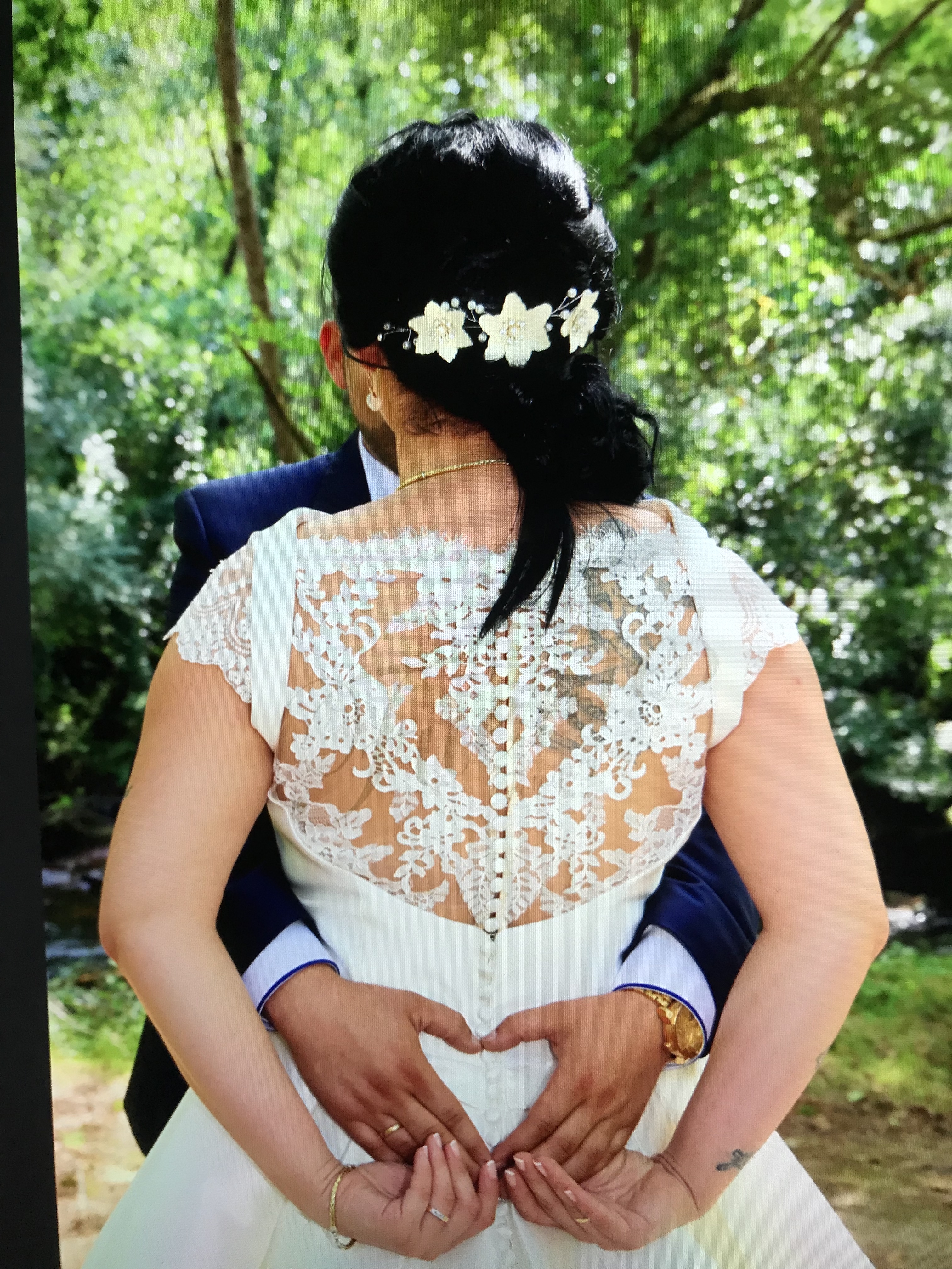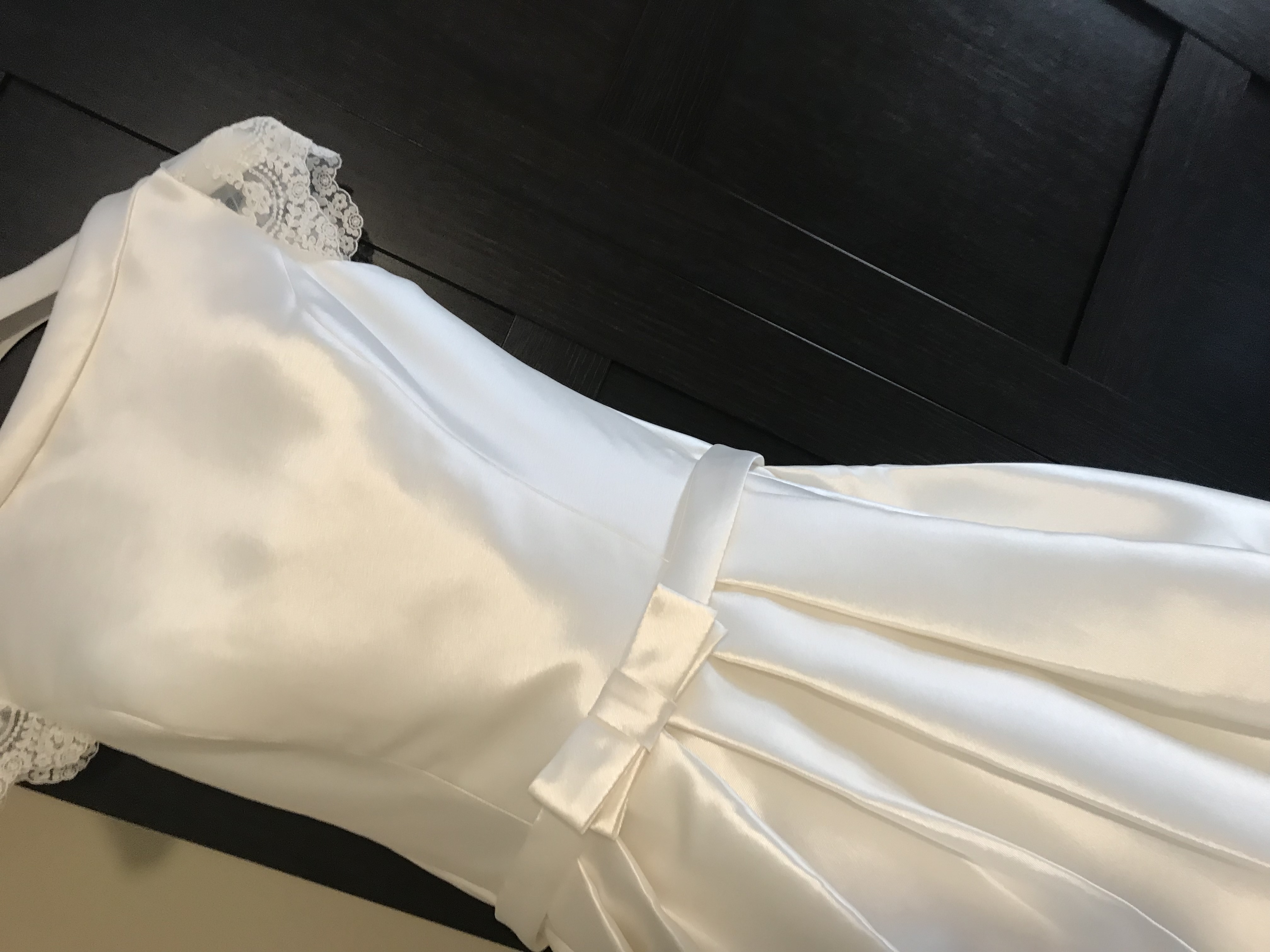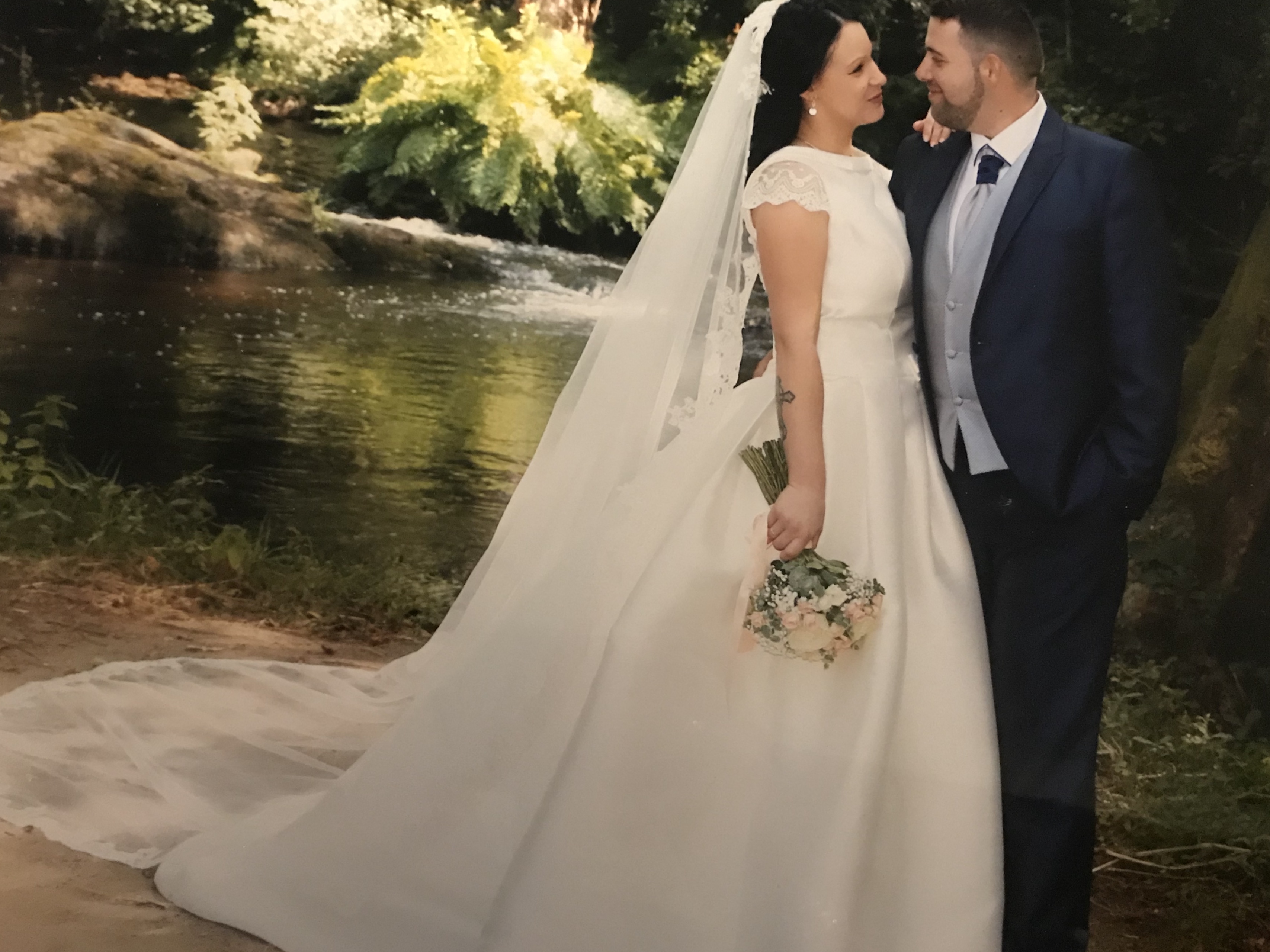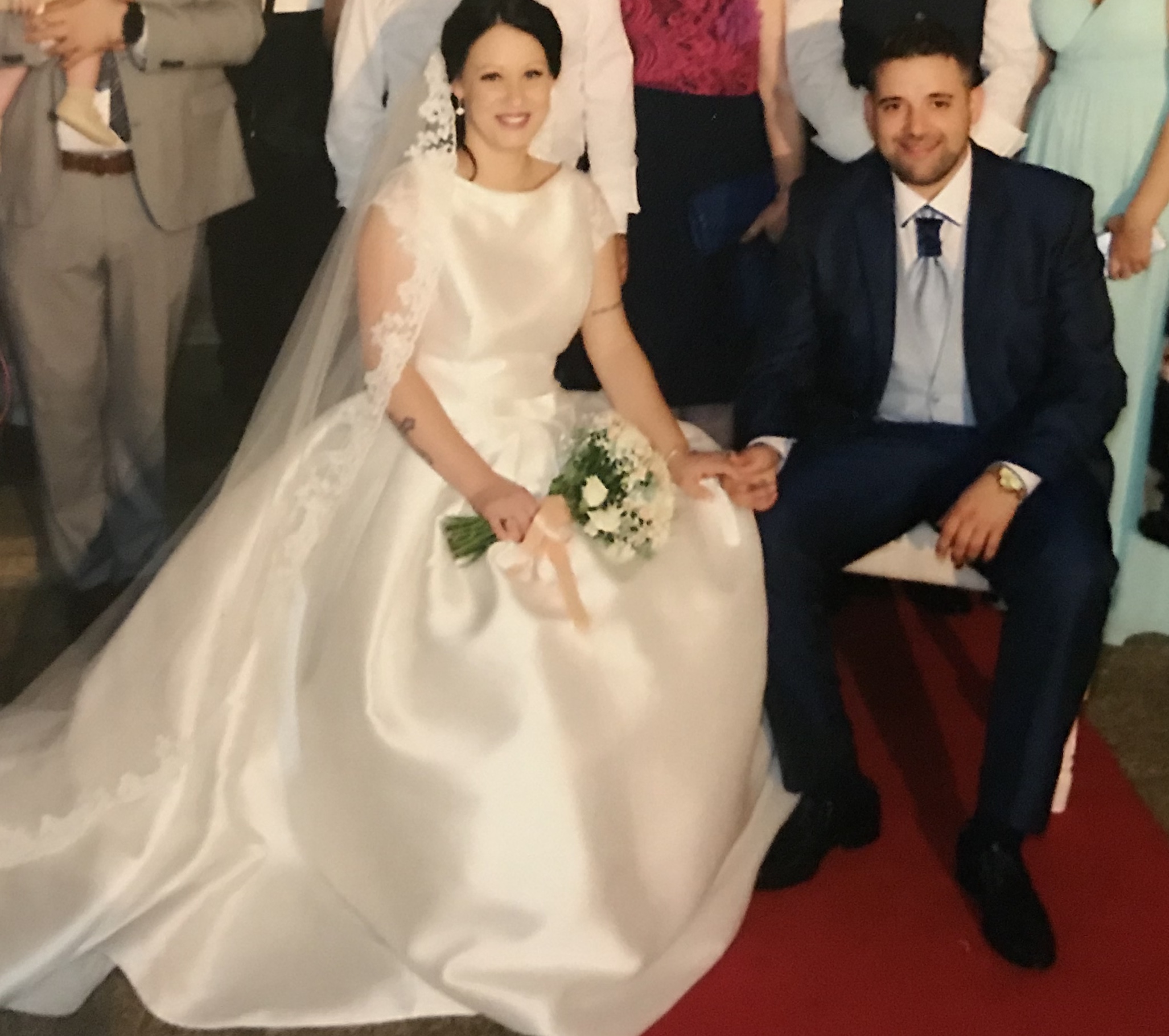 Vestido en perfecto estado talla 42,usado una vez,lavado en tintorería incluido en el precio velo de 2.5m.