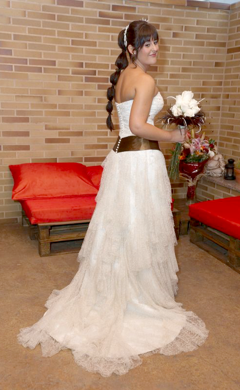 Decirte además que el traje es muy muy cómodo y elegante. Sobre todo para bailar, sentarte, etc. En definitiva, es un vestido de novia perfecto para disfrutar durante todo el día sin estar pendiente del vestido.