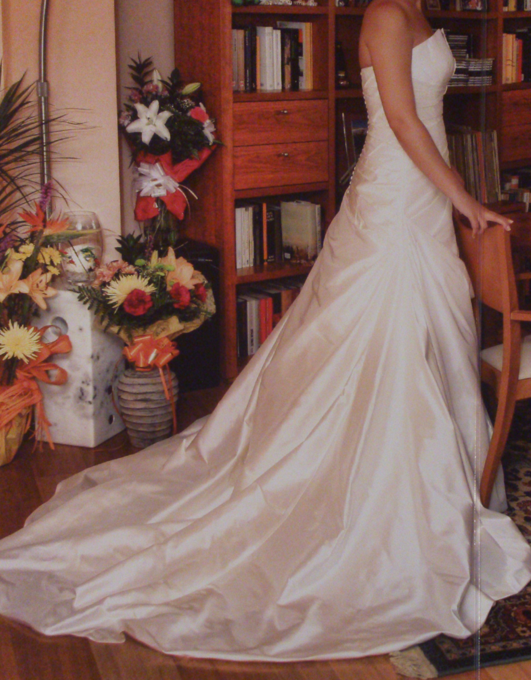 Vendo vestido de novia modelo Geraldine de Pronovias, de seda, precioso, palabra de honor y con cola. La única vez que lo llevé me sentí como una auténtica princesa.