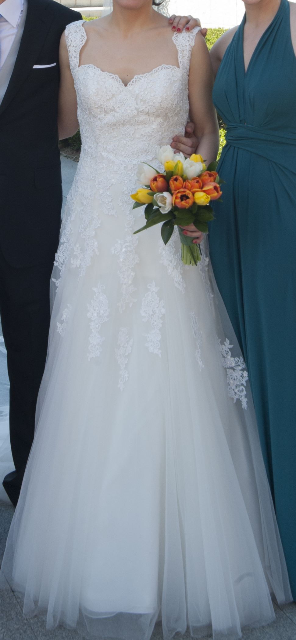 Vestido de novia elegante y romántico – estilo princesa, encaje floral – Talla 36 ajustada