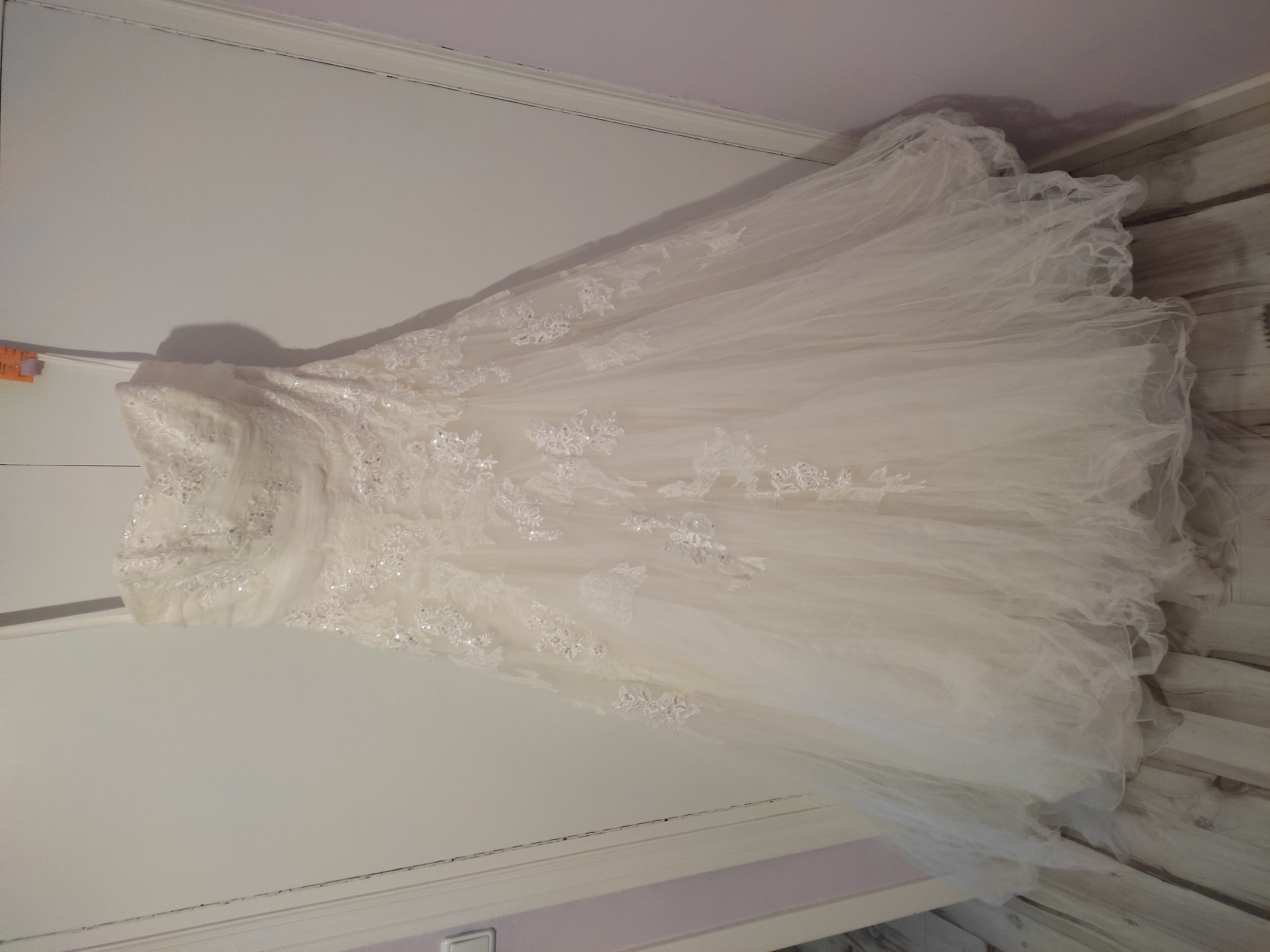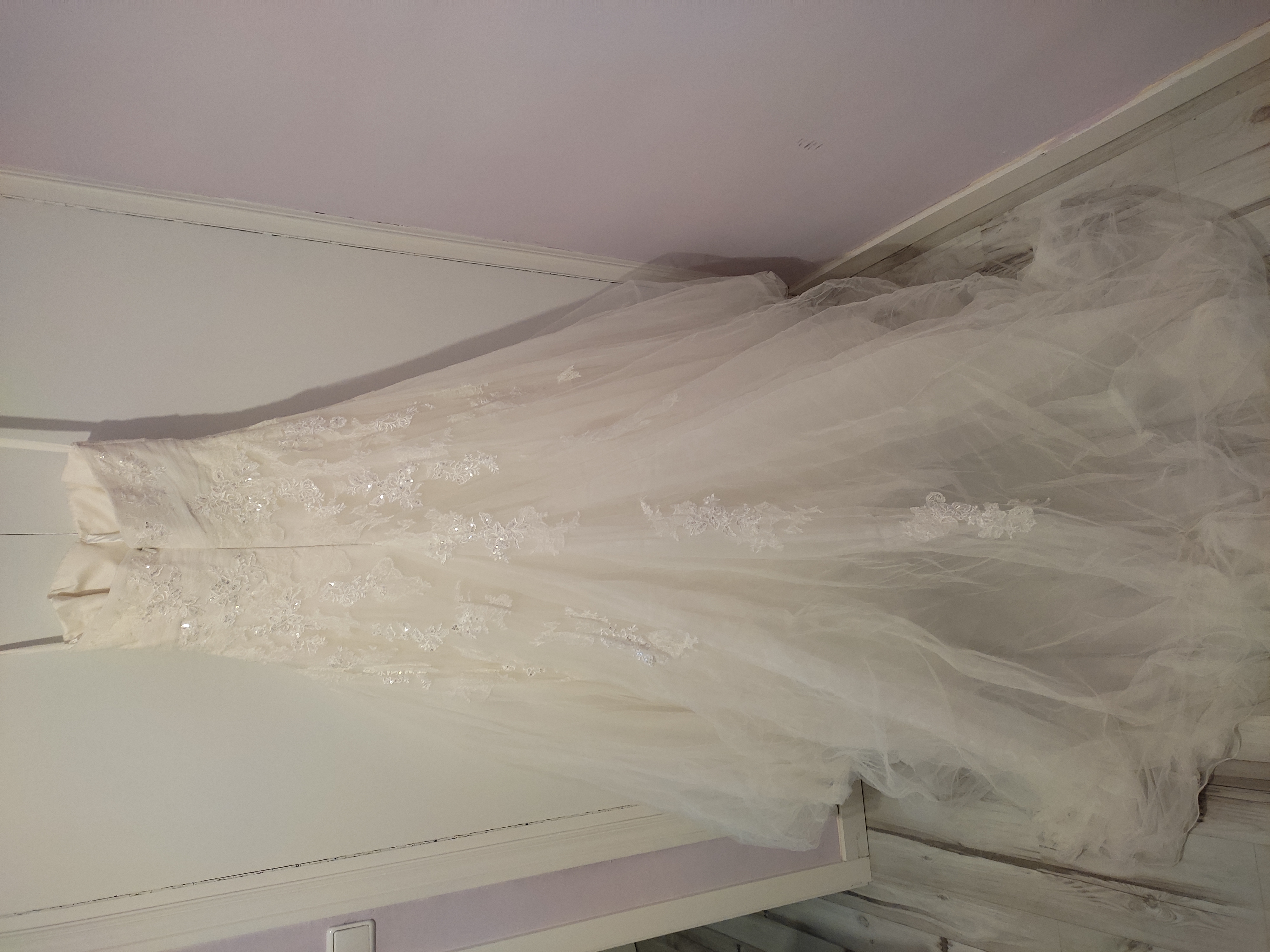 Vendo vestido de novia de Pronovias,con el cancán y el velo de puntilla de chantillí todo nuevo y lavado en tintorería con el mejor lavado me costo lavarlo 85€.