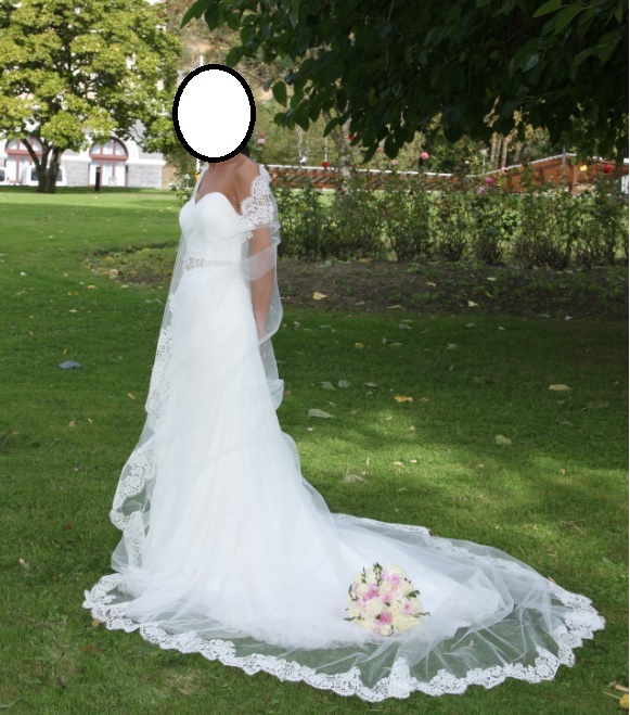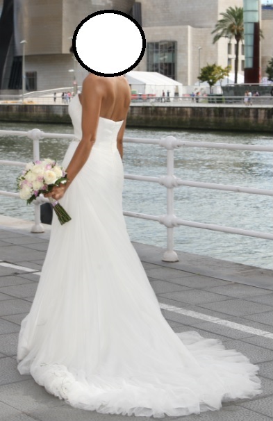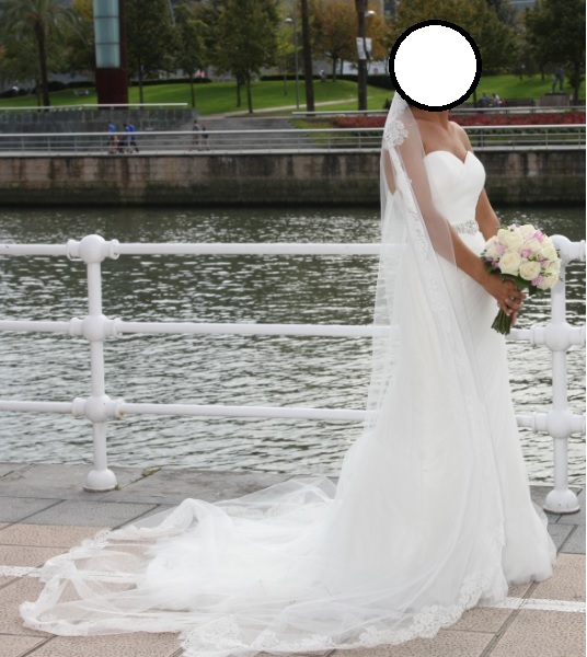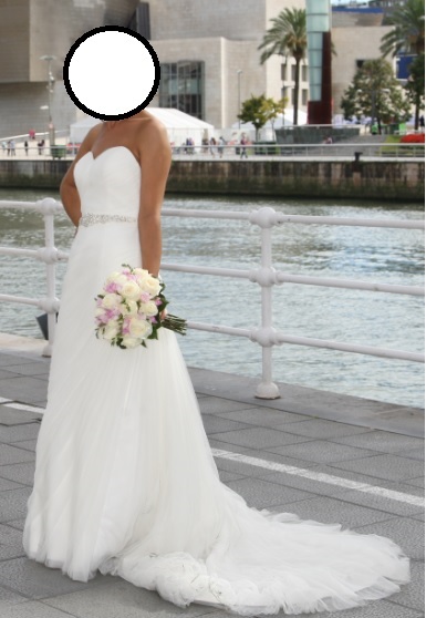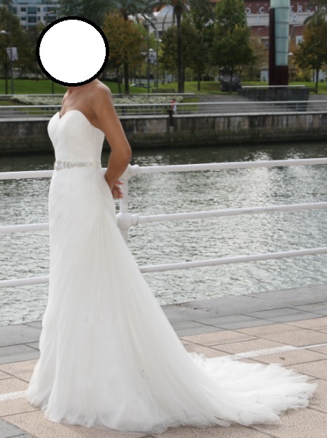 Vestido Pronovias, modelo orel, colección 2014, talla: 40 con arreglos. Se incluye velo, cancán y cinturón de pedreria, opcionalmente los zapatos del número 40. Usado un único día (día de la boda) y lavado de tintorería, en perfecto estado. Color Blanco