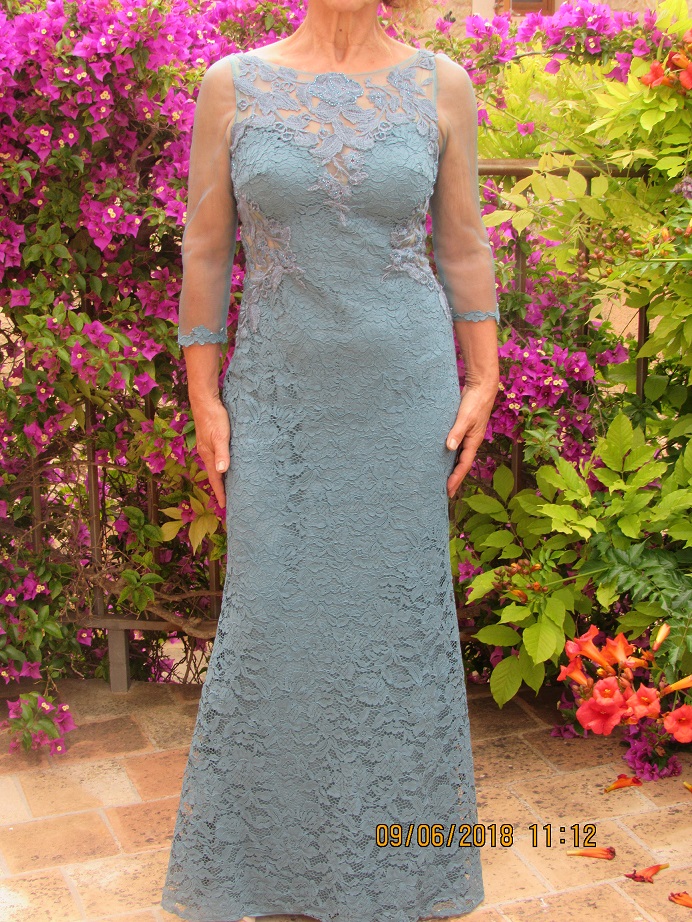 Este vestido ha sido puesto solo una vez. Es de encaje con algo de pedreria en el pecho, tiene transparencias bien disimuladas y un poco de cola.es muy comodo de llevar. El escote de atras lo he cerrado un poco, pero es facil ponerlo como era original, tambien añadi unas mangas de gasa, que se pueden quitar. Lo demas lo veran en las fotos. Espero que les guste, a mi me encanto pero creo que no tendre ocasiòn de volverlo a poner. Gracias.