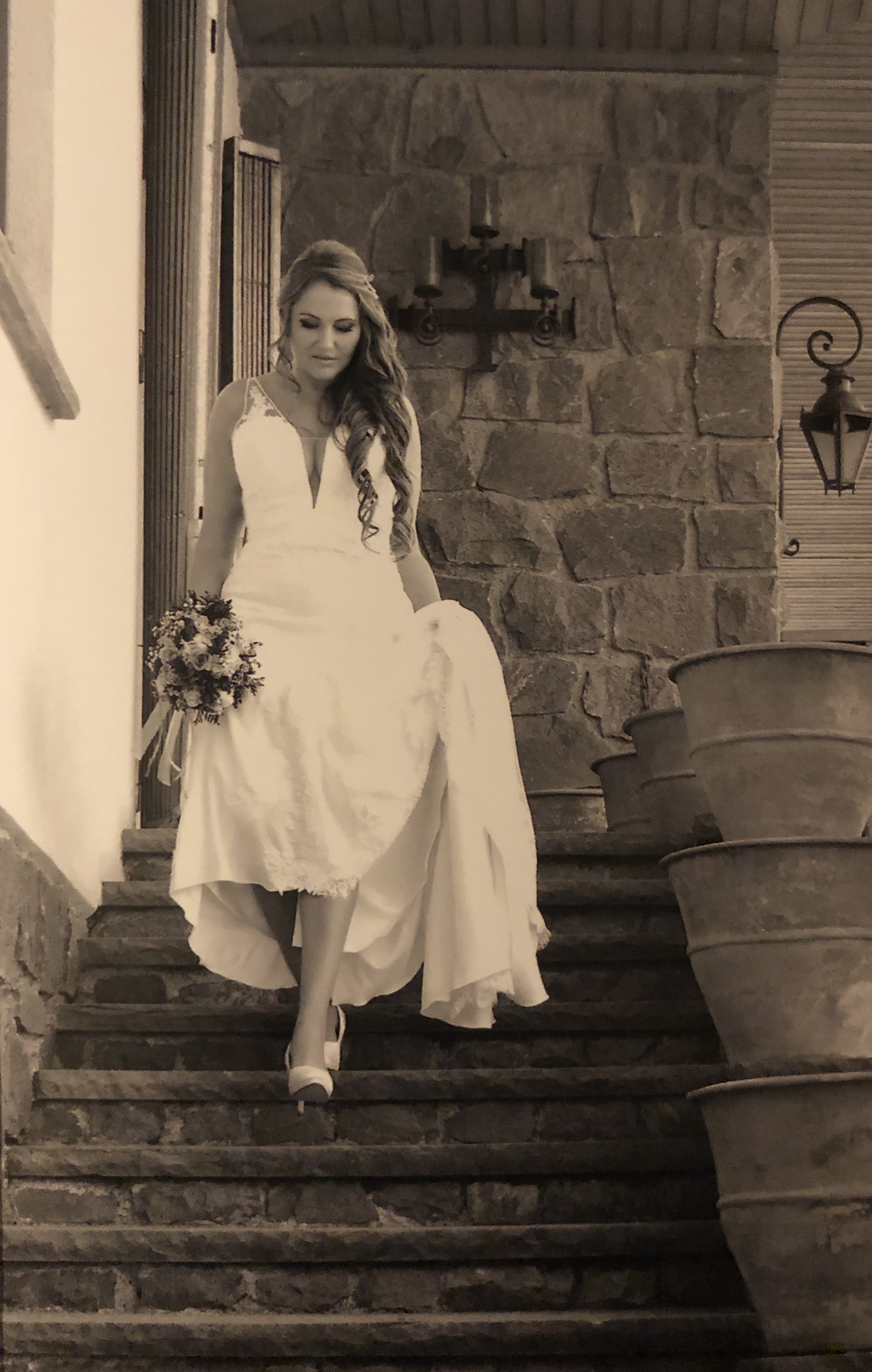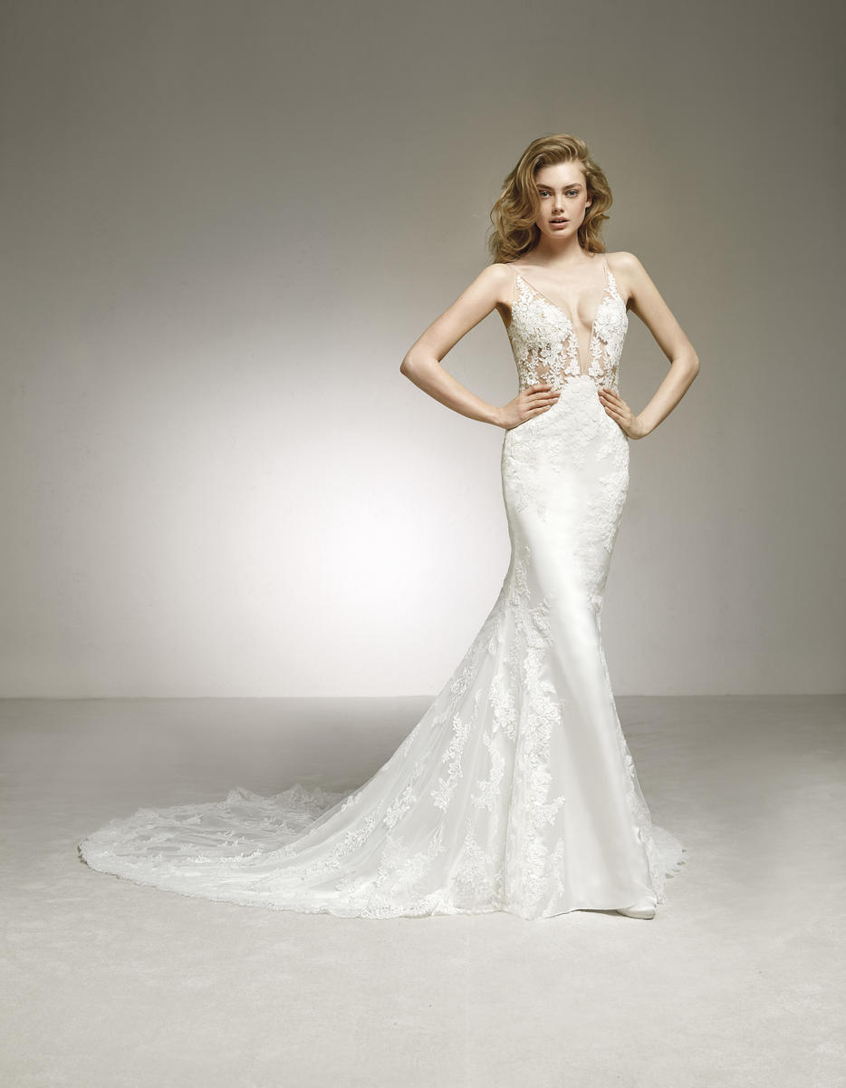 Pronovias Ileas, corte sirena. Yo modifiqué la cola, recorté un metro aproximadamente ya que era demasiado larga y quedaba más bonito. Talla 38, espectacular.