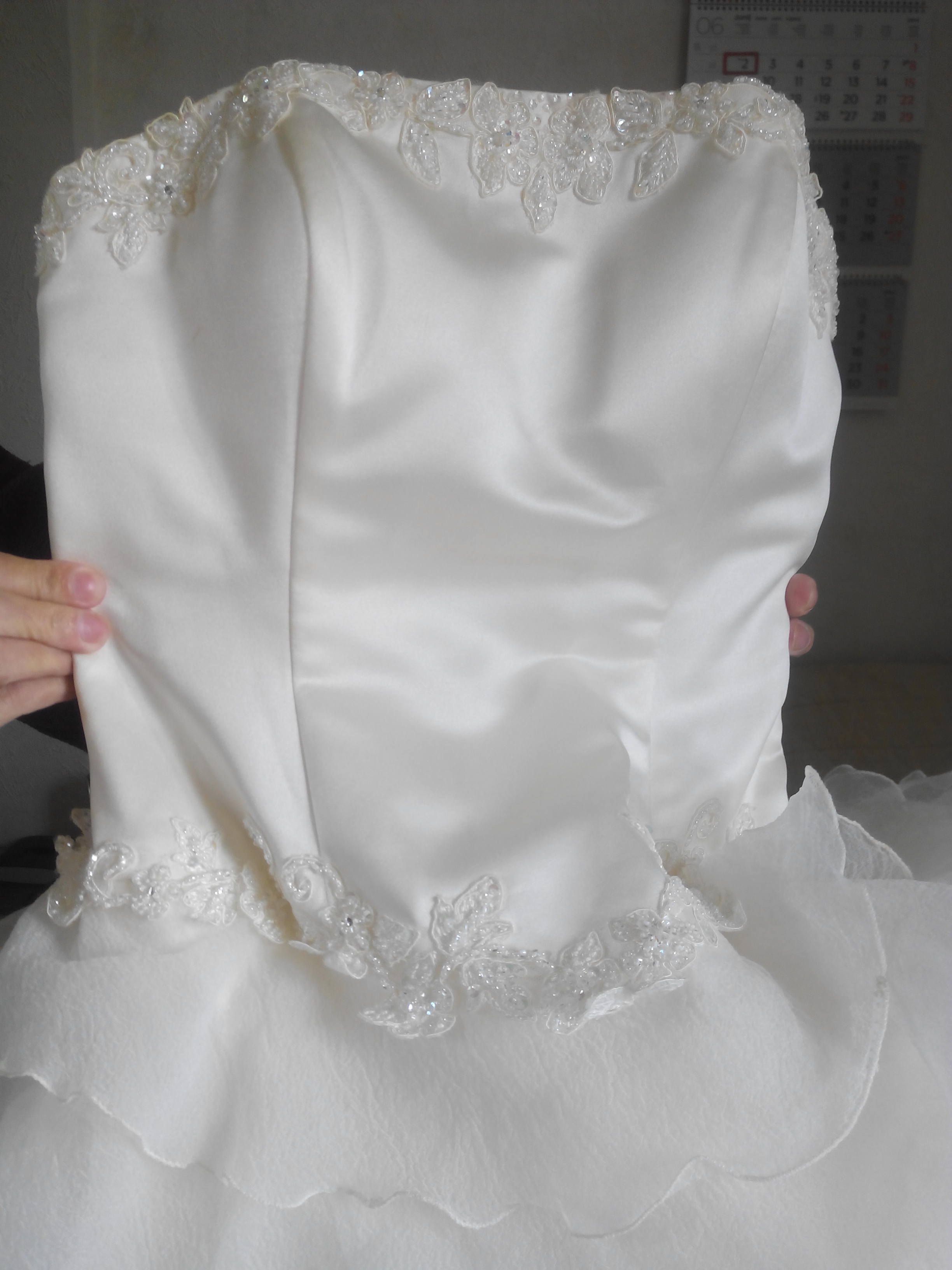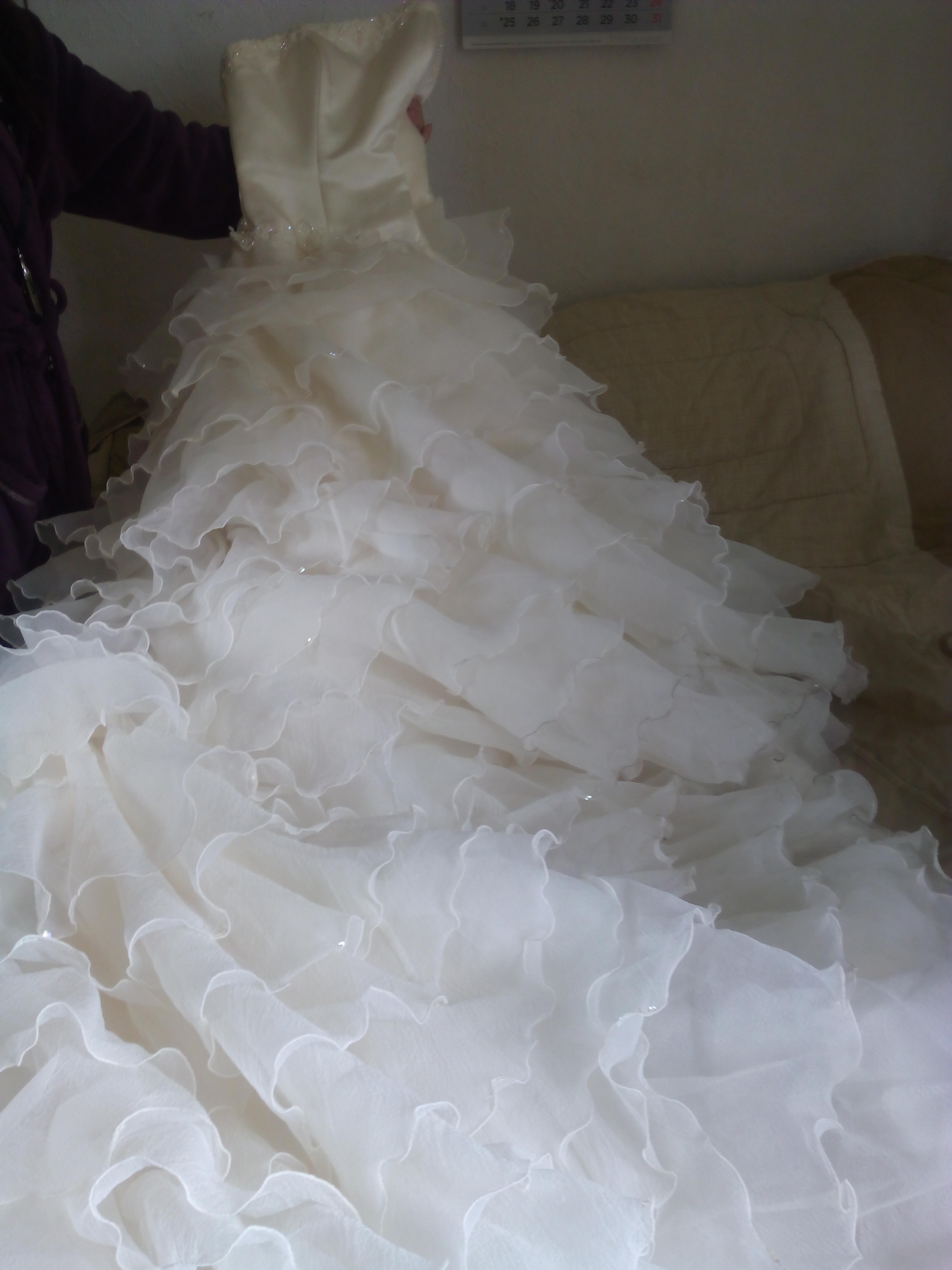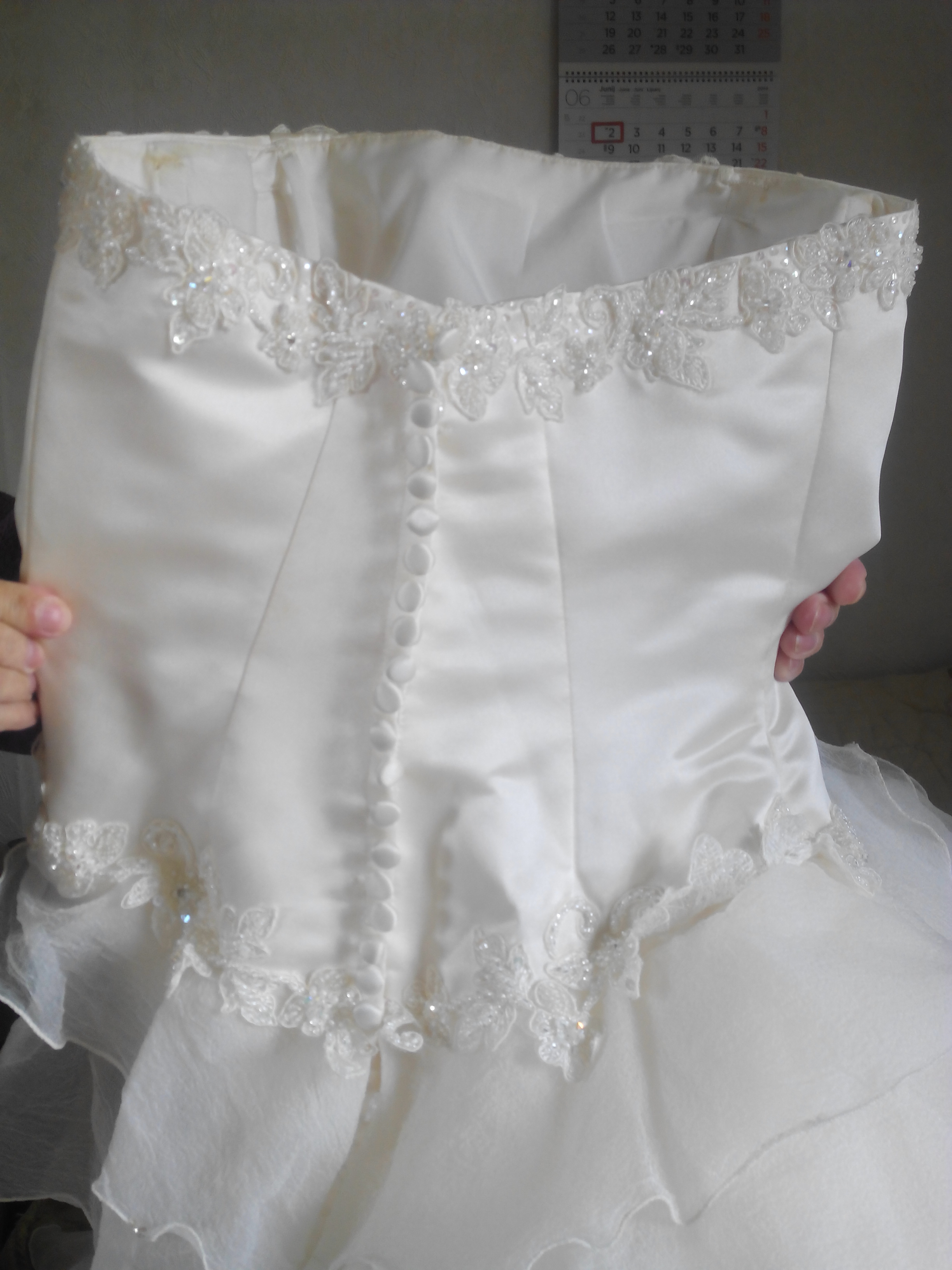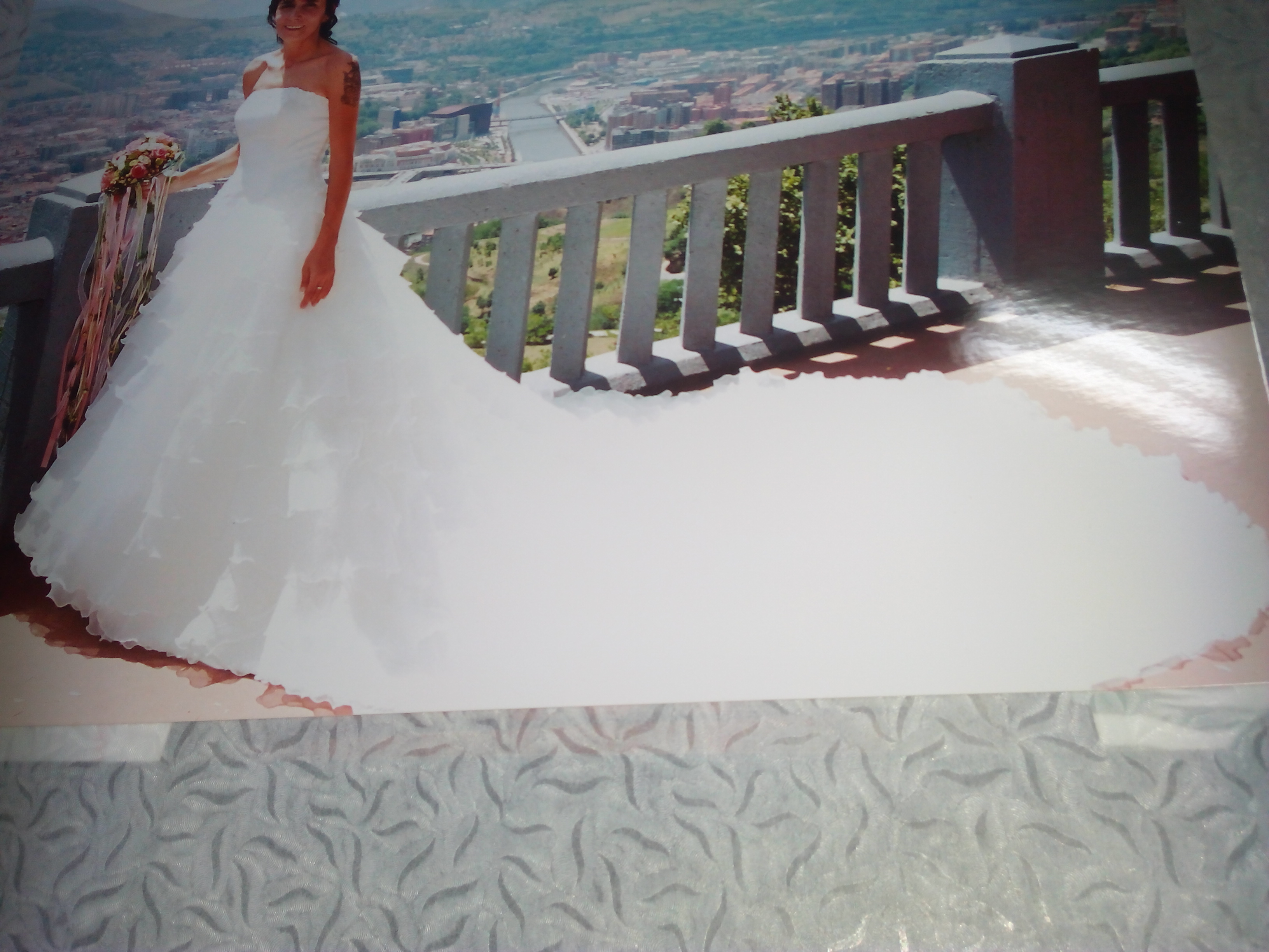 Vestido de encaje con una cola enorme, con corpiño es precioso si te gustan como una princesa.