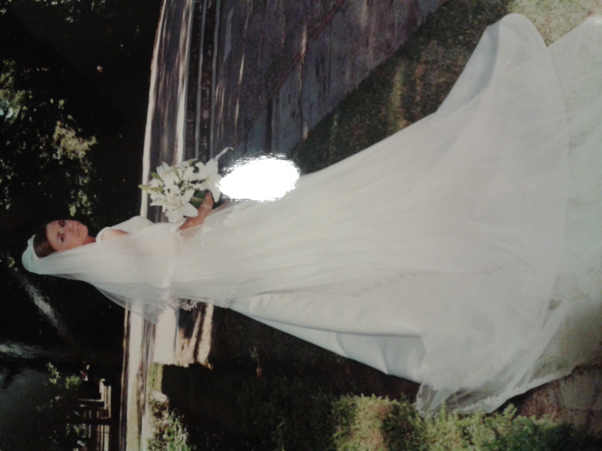 Vendo vestido de novia de dos piezas formado x corpiño y falda con cola. El vestido está impecable. Regalo el velo si interesa. Es de la colección de Pronovias.Talla 38.