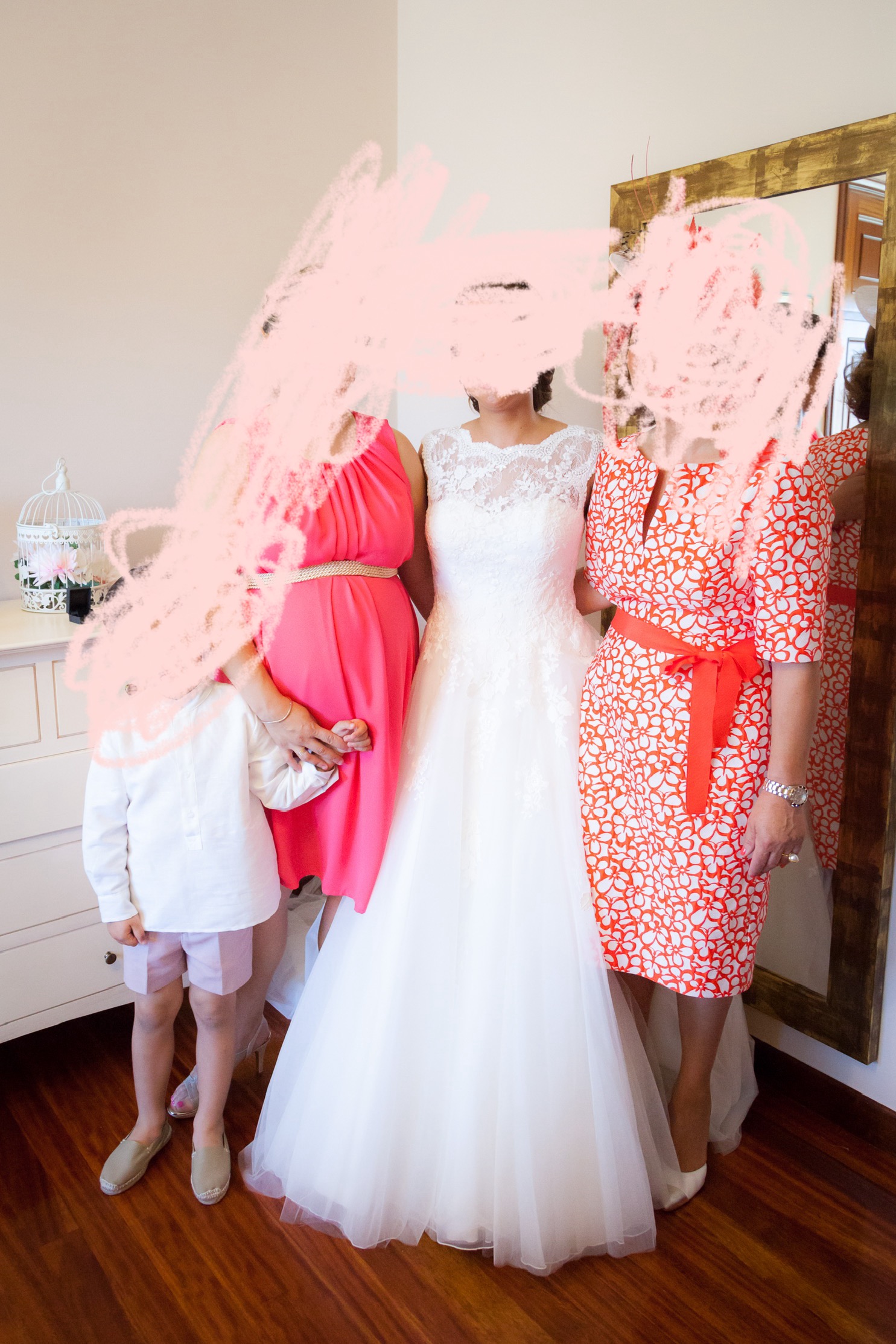 Precioso vestido de novia princesa cuerpo de encaje y falda de tull . Escote caja con ondas y espalda en pico . Comprado en Pronovias 2016 , talla 38 incluyo velo a juego ( valorado en 500 euros) más fotos por whatsap