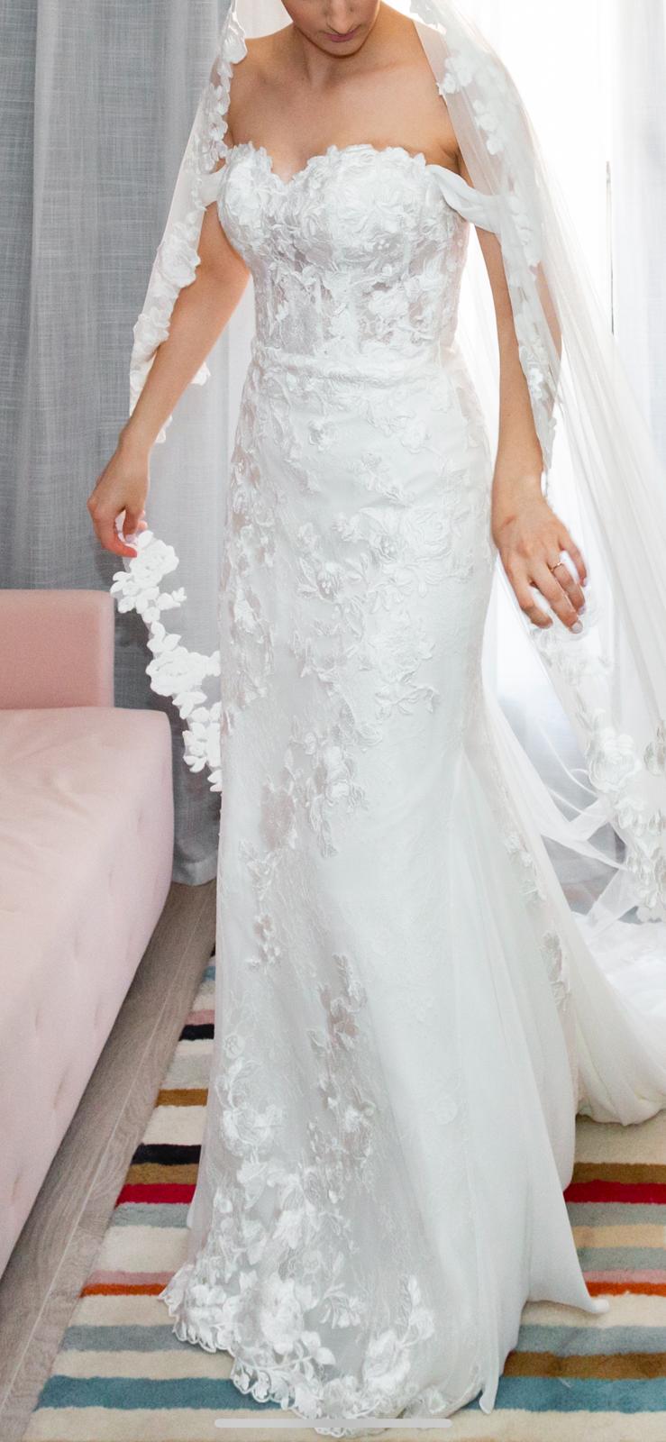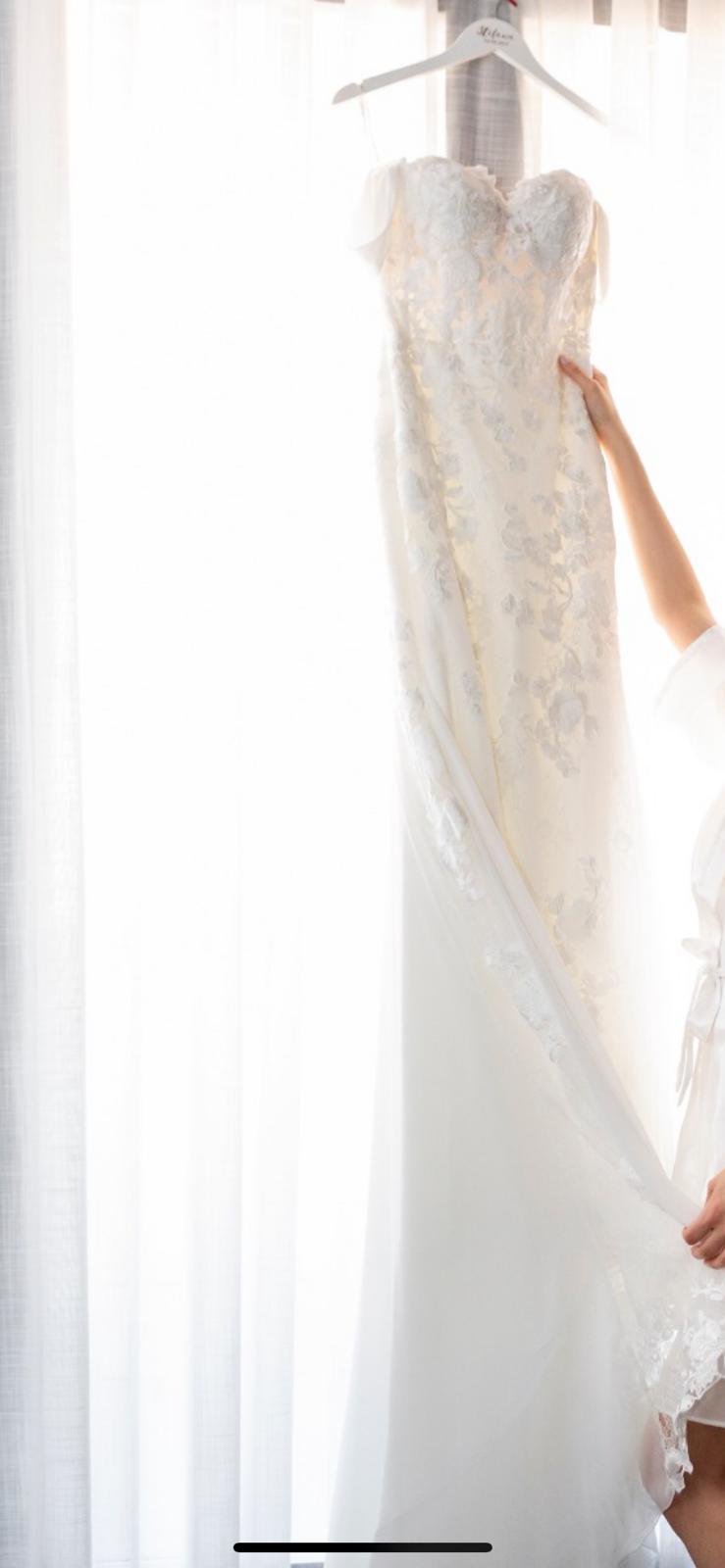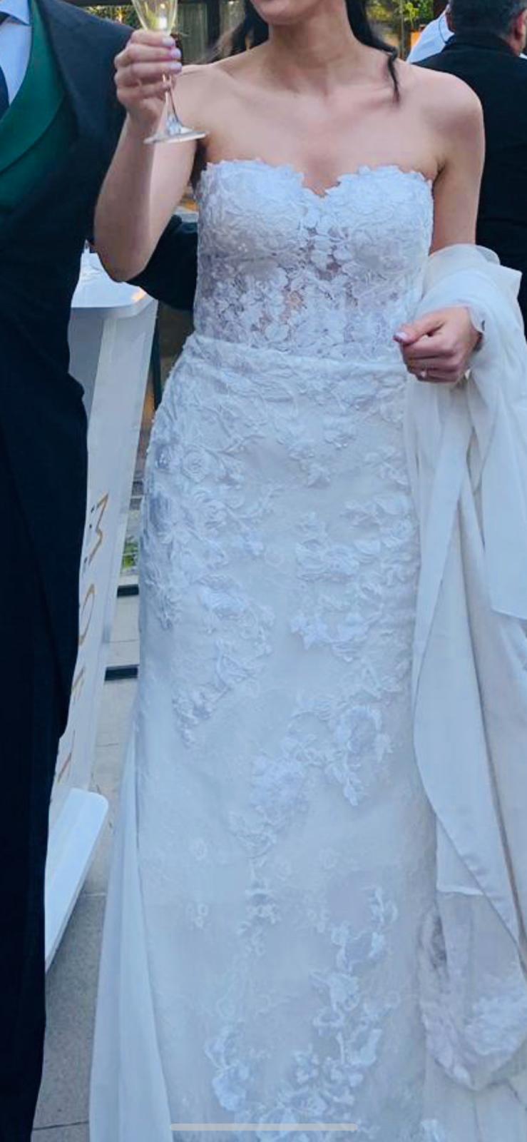 Vestido de Pronovas corte sirena talla 36. Con opcion de quitar las mangas (2 looks). Lavado y listo para usar. Muy comodo y elegante.