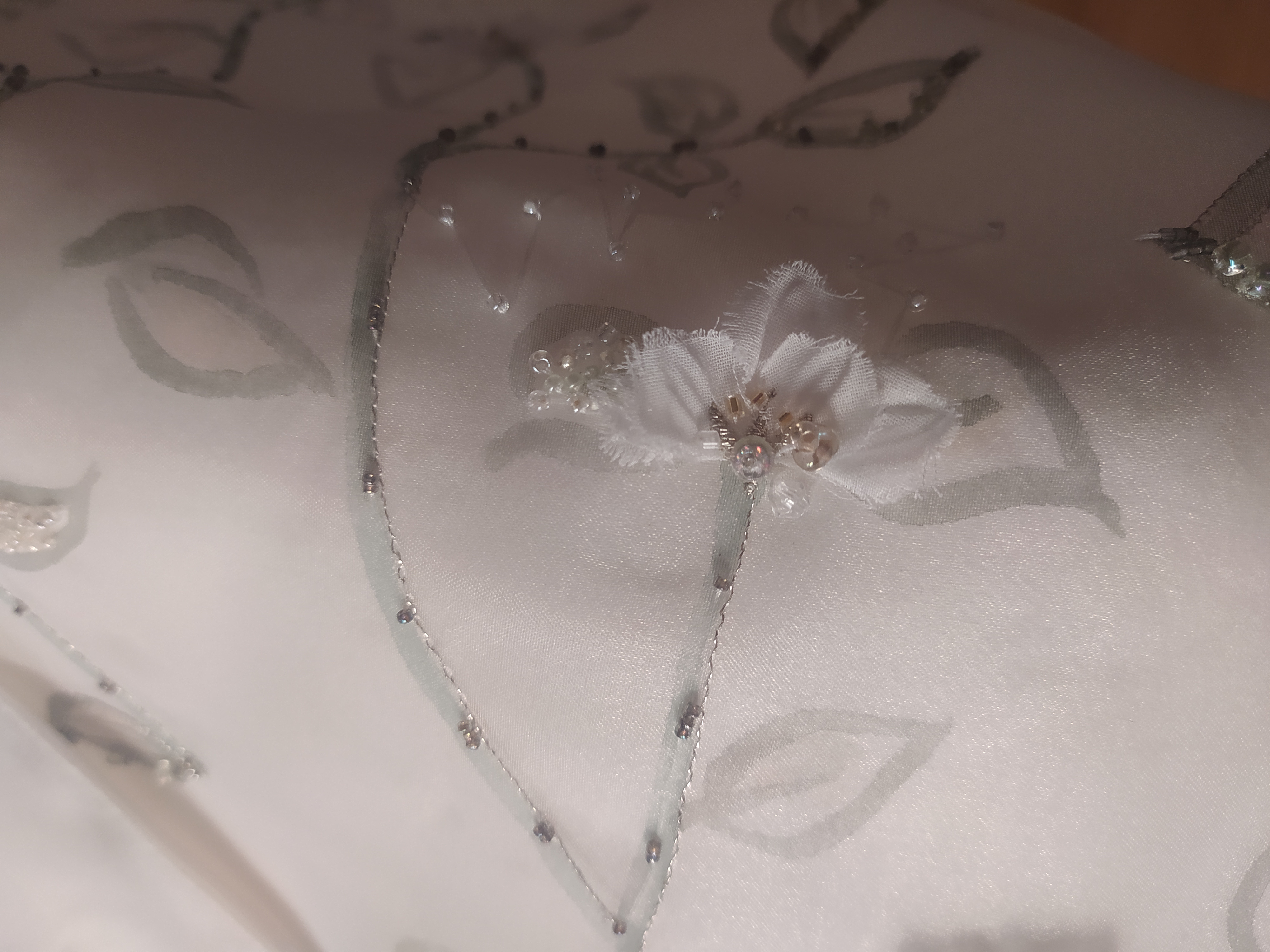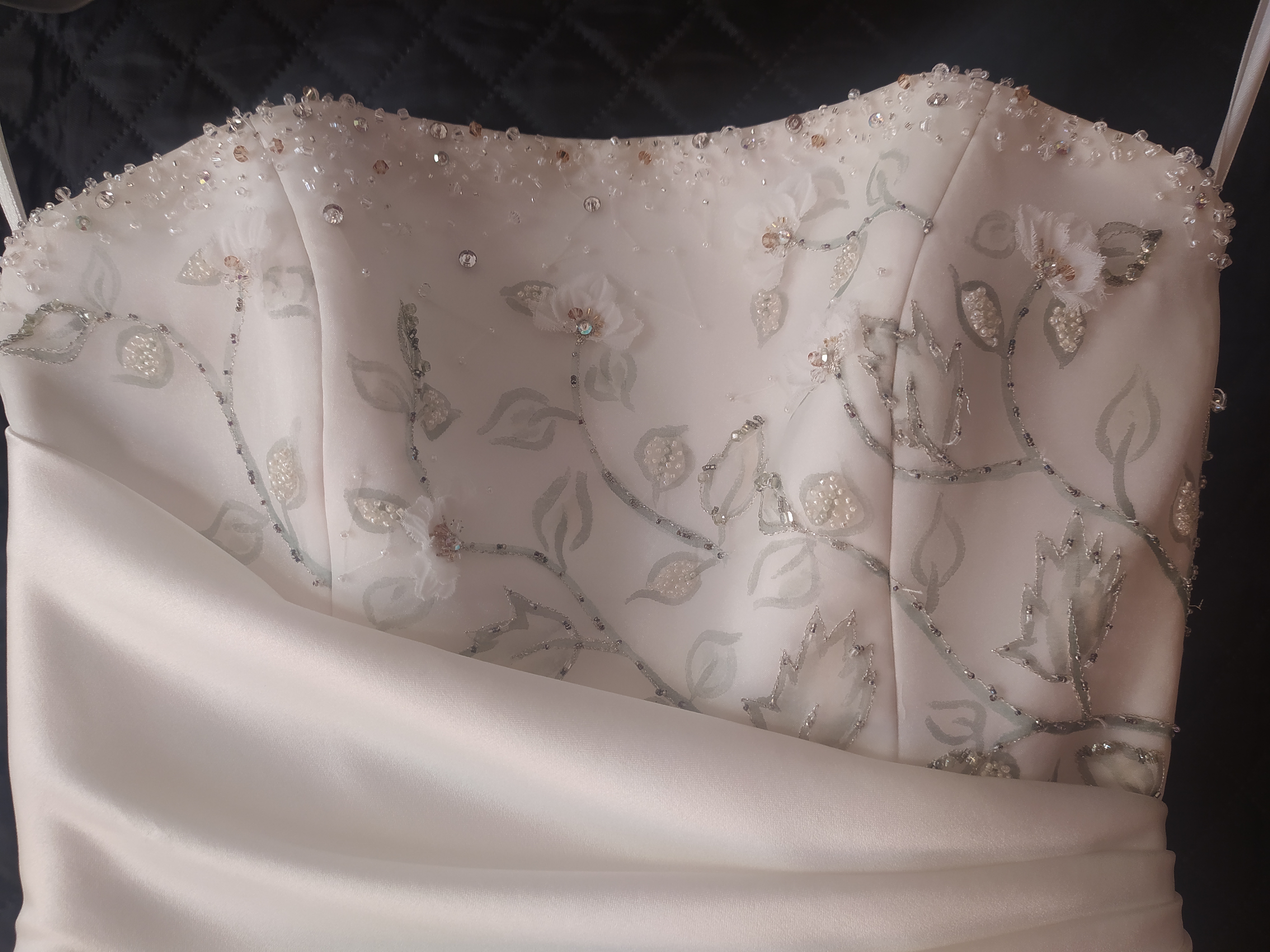 Vestido Pronovias talla 36. Pedrería y bordado de flores, toque de color verde pintado. Está impecable.