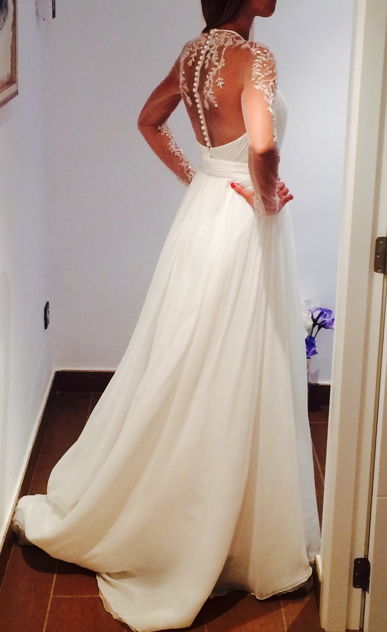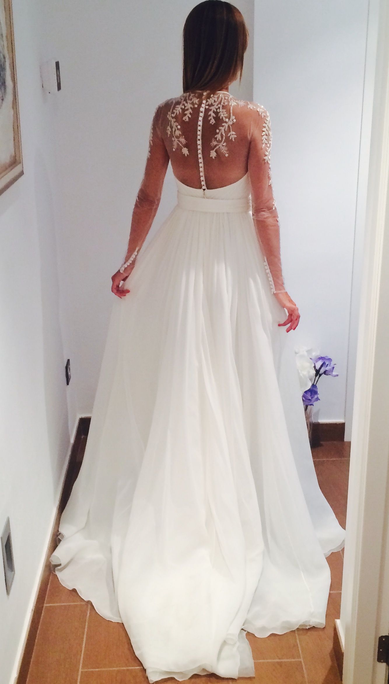 Yo buscaba un vestido fino, elegante y actual y lo encontré. Es el modelo YAJAIDA de ATELIER PRONOVIAS 2015.