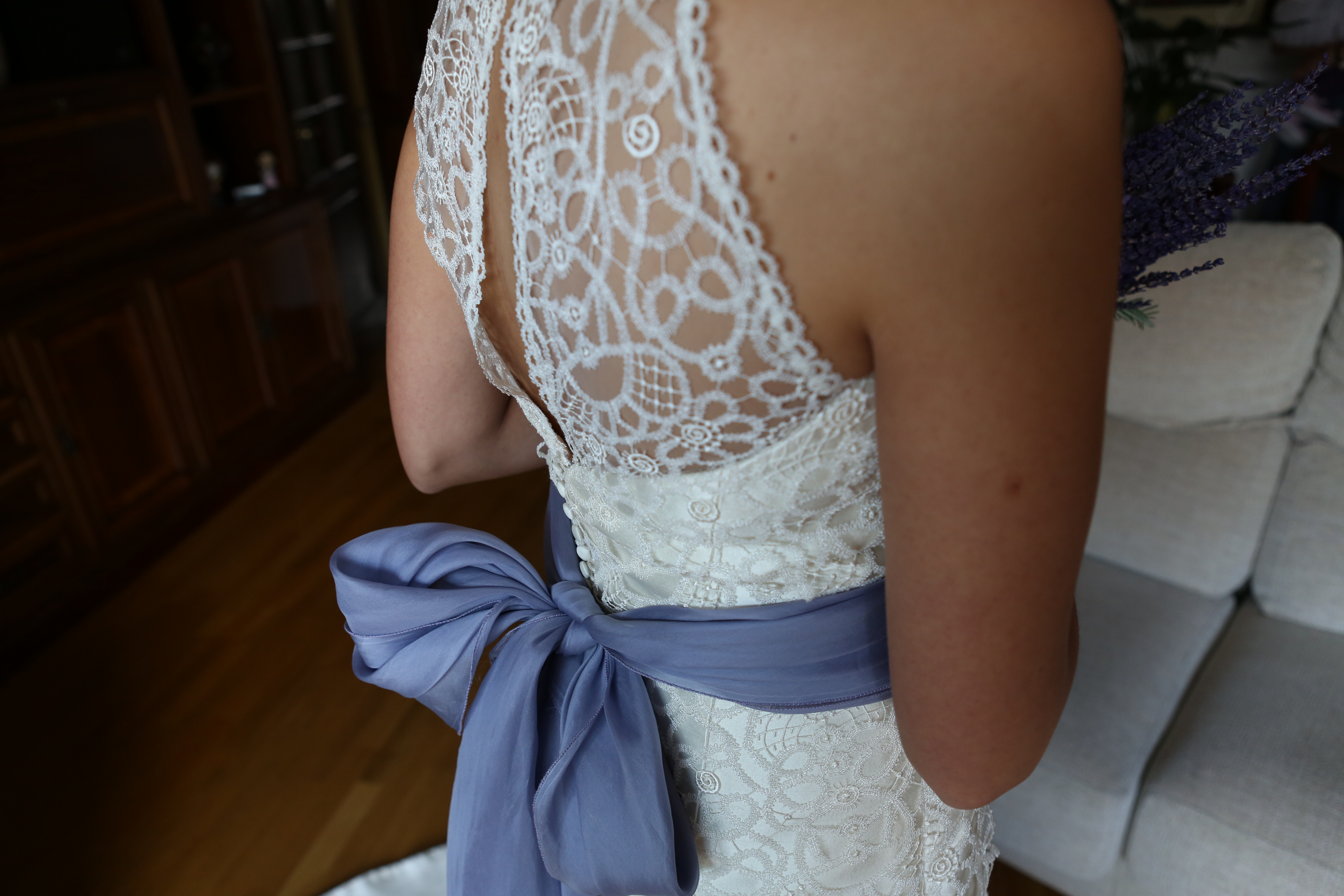 El vestido está en perfectissimo estado, lavado en la tintorería y en su caja original. La seda salvaje es de gran calidad, como todos los vestidos de Bundó. Regalo foulard. Es muy comodo y elegante, con una espalda impresionante. Realza la figura y el escote.
