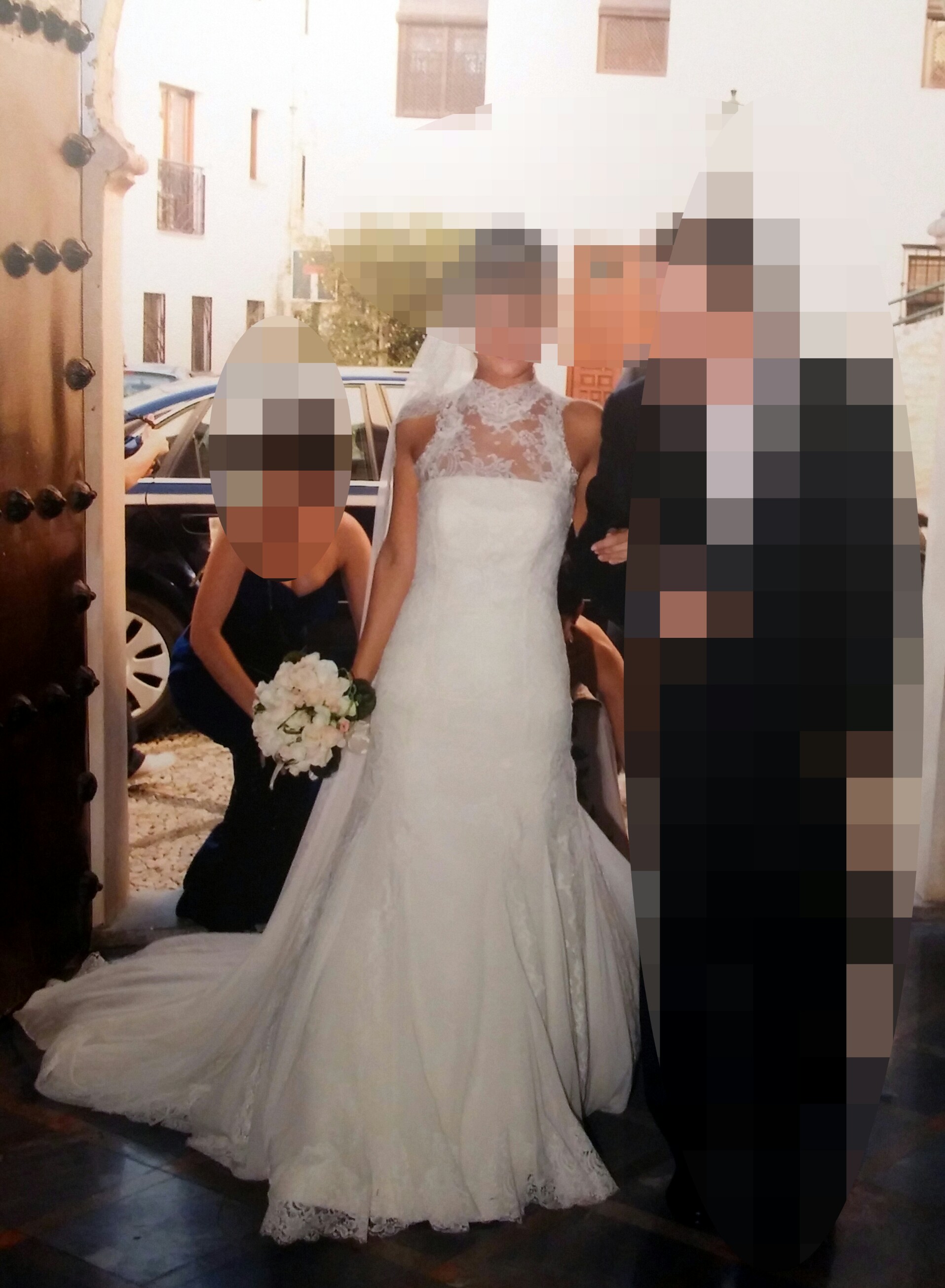 Vestido BLANCO ROTO. Dos piezas: si se quita el encaje de fuera, se queda en palabra de honor (como muestran las fotos). La talla del vestido es una 36 con posibilidad d sacarle y conseguir una 38. El vestido está en perfecto estado con lavado d tintorería y se vende, además d con las dos partes del vestido, con el velo. No dejes pasar esta oportunidad de sorprender a tus invitados con dos vestidos en uno!!!
