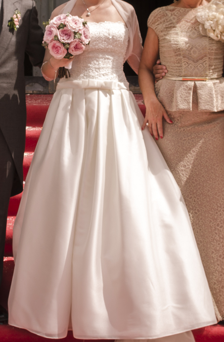 Vendo vestido de novia, en perfecto estado, Rosa Clara, colección 2015, modelo Rene de guipur pedrería y gazar en color natural, talla 40. Adémas añado gratis bolero modelo Sandy (Rosa Clara), cancán, velo modelo Badia (Rosa Clara), medias y liga. Precio negociable.