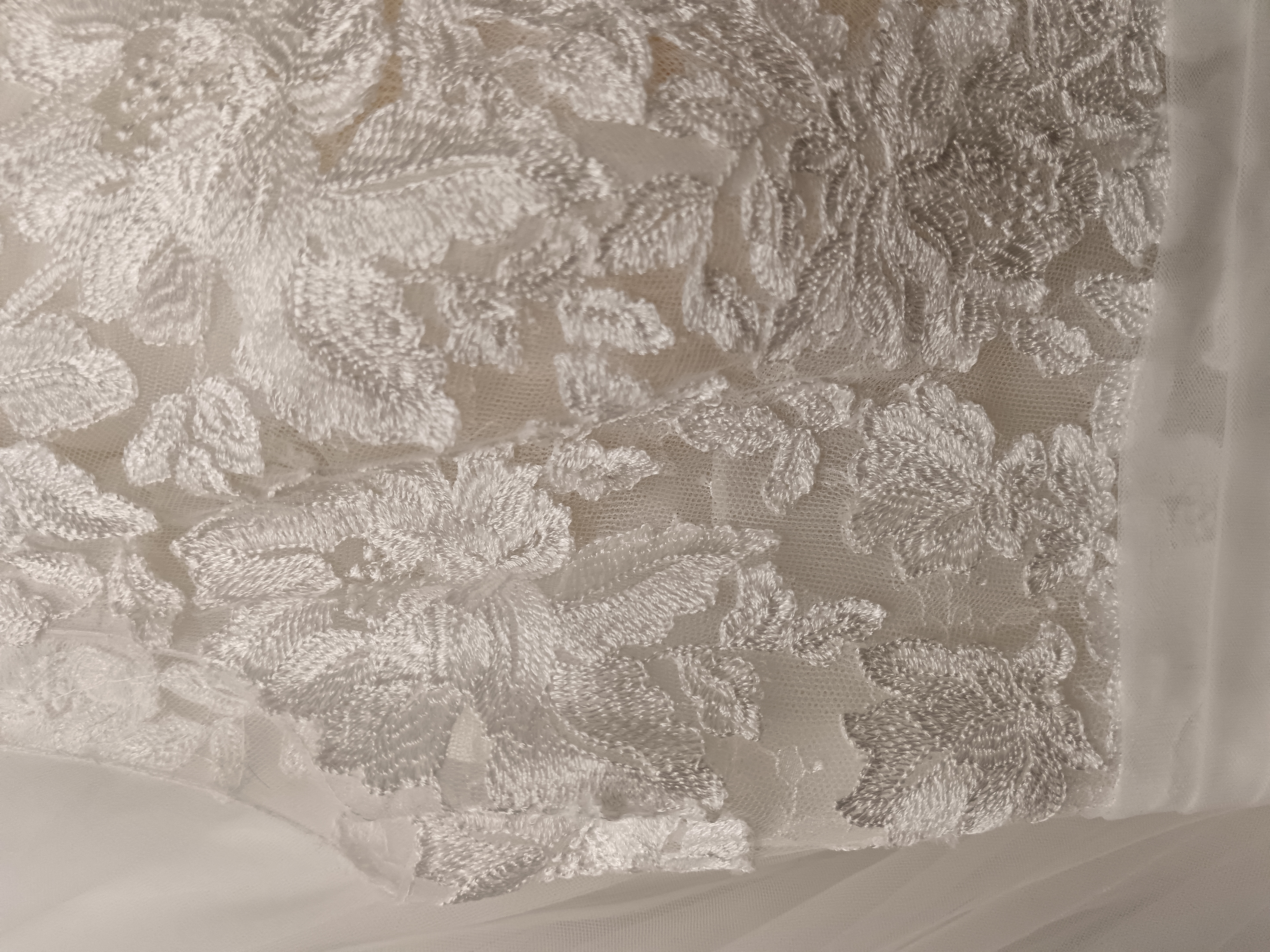 No se realizó ningún retoque al vestido.Las tiendas de novia aconsejan ajustar cada detalle del vestido en la 1ª prueba que no llegó a concretarse .Así que si tu talla es la 38 -40 o 42 podrás ajustarlo perfectamente a medida con los retoques necesarios.