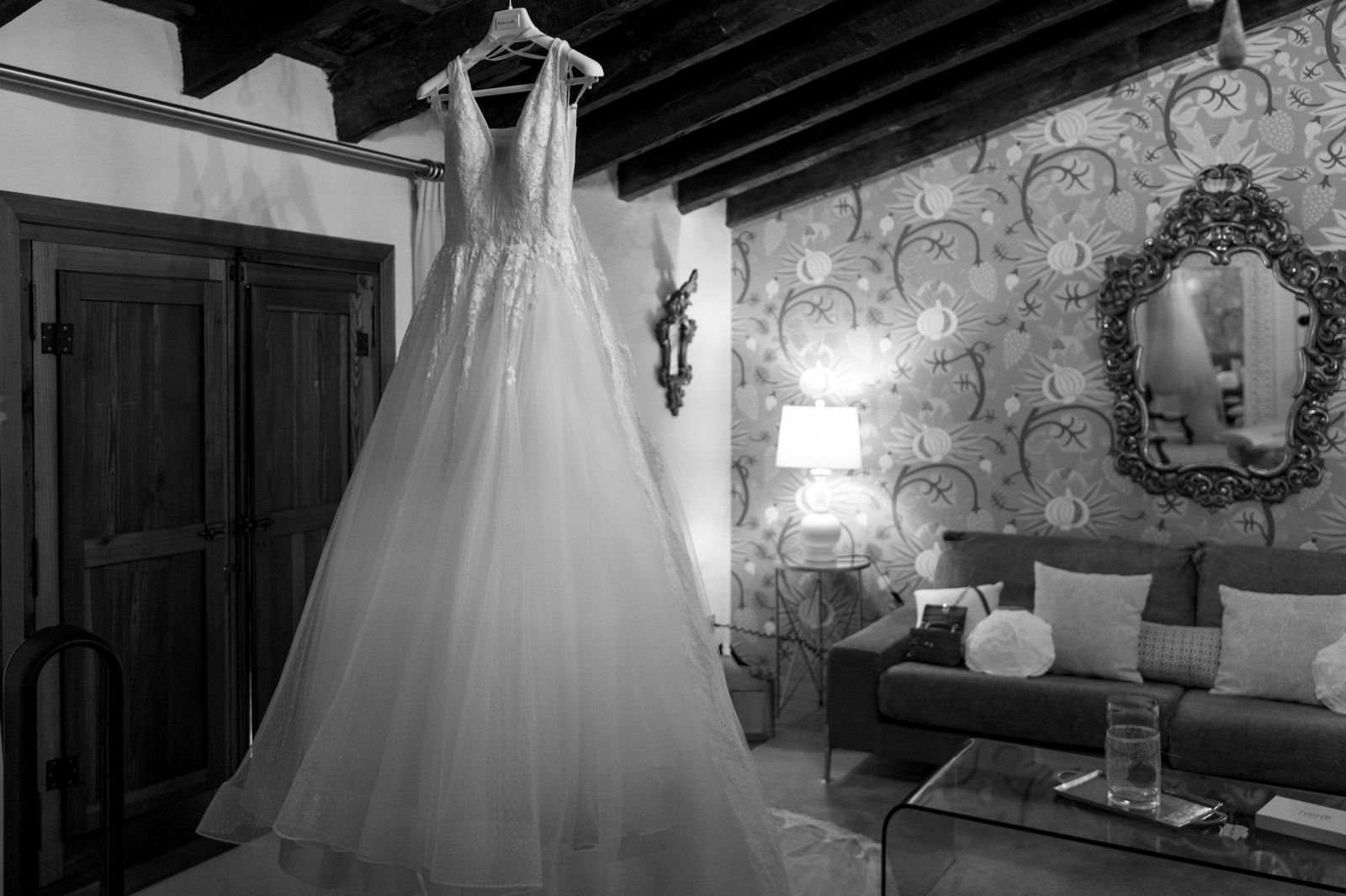 El precio original del vestido es de 2290€. También me compré el cancán en Rosa Clará. El precio original es de 160€ y lo vendo por 100€.