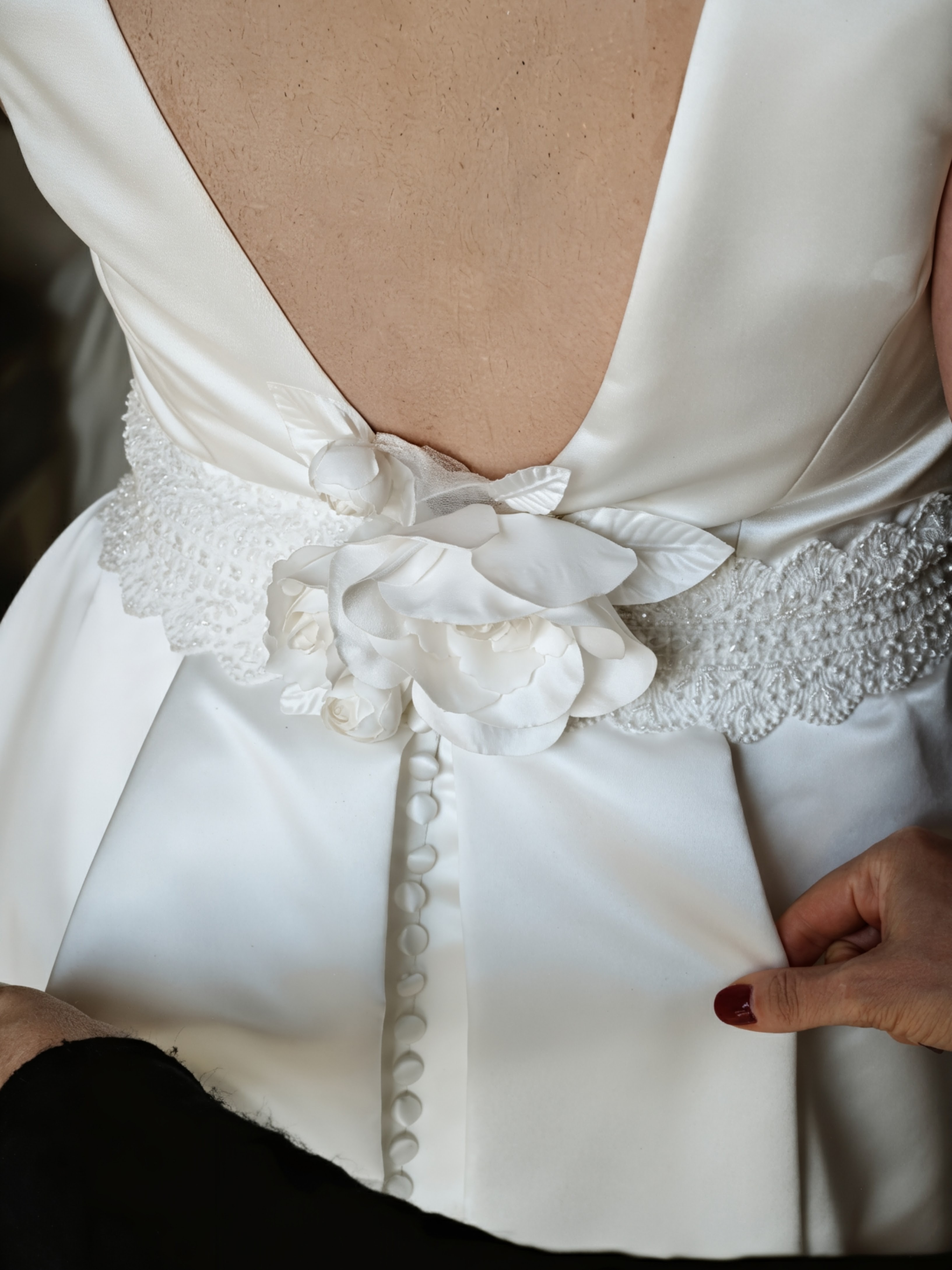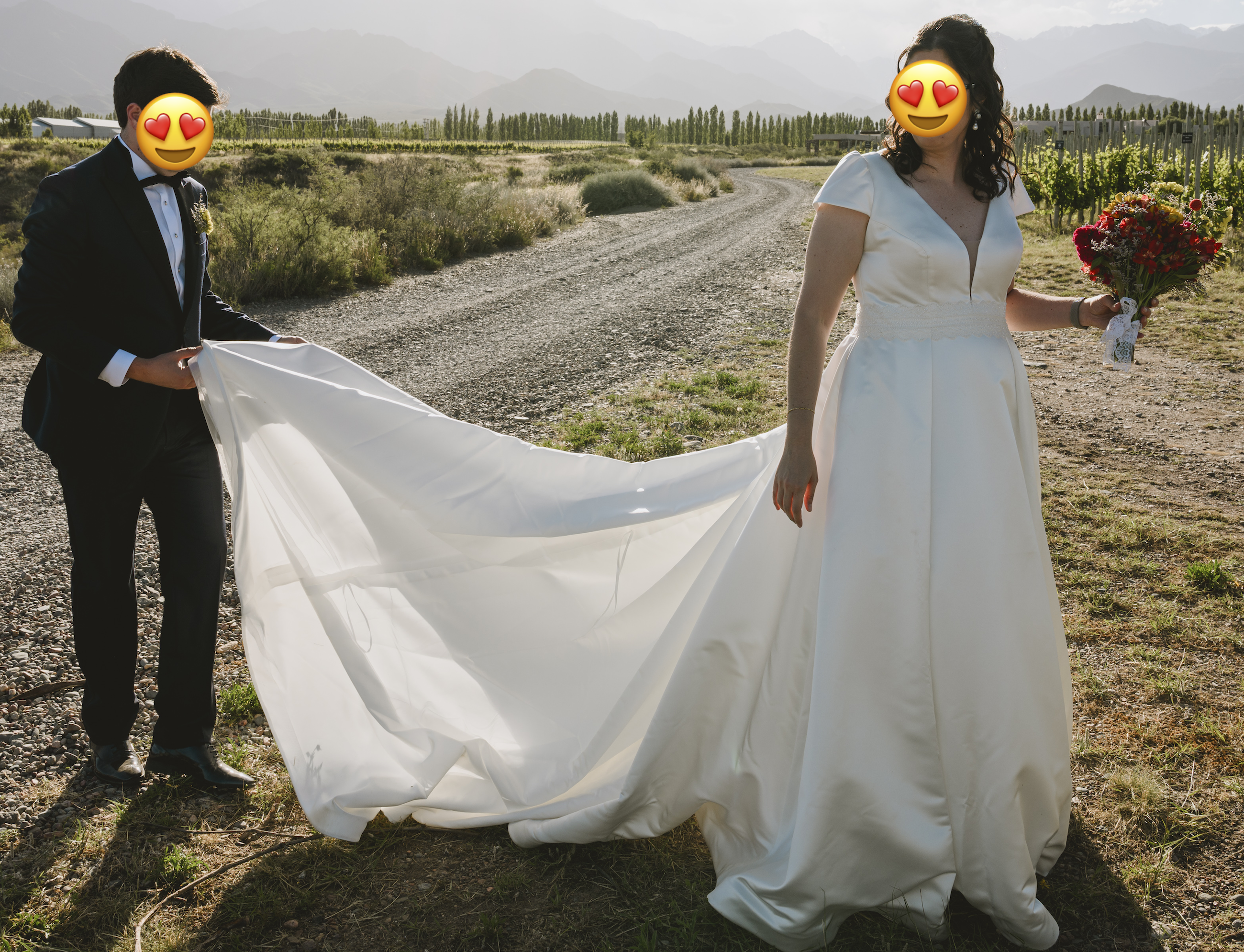 Comodidad: “Tiene opción de recogecola para el baile, así puedes llevarlo largo en la ceremonia y cómodo después.” Además tiene bolsillos grandes, increíblemente útiles el día de la boda para móvil o kleenex.