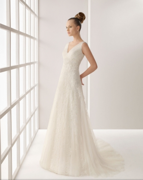 Vendo vestido Rosa Clará modelo Levia colección 2012 talla 38. Está limpio de tintoreria. Es un vestido de encaje de seda y tul con pedreria, altura con tacones vestido 1,70cm.