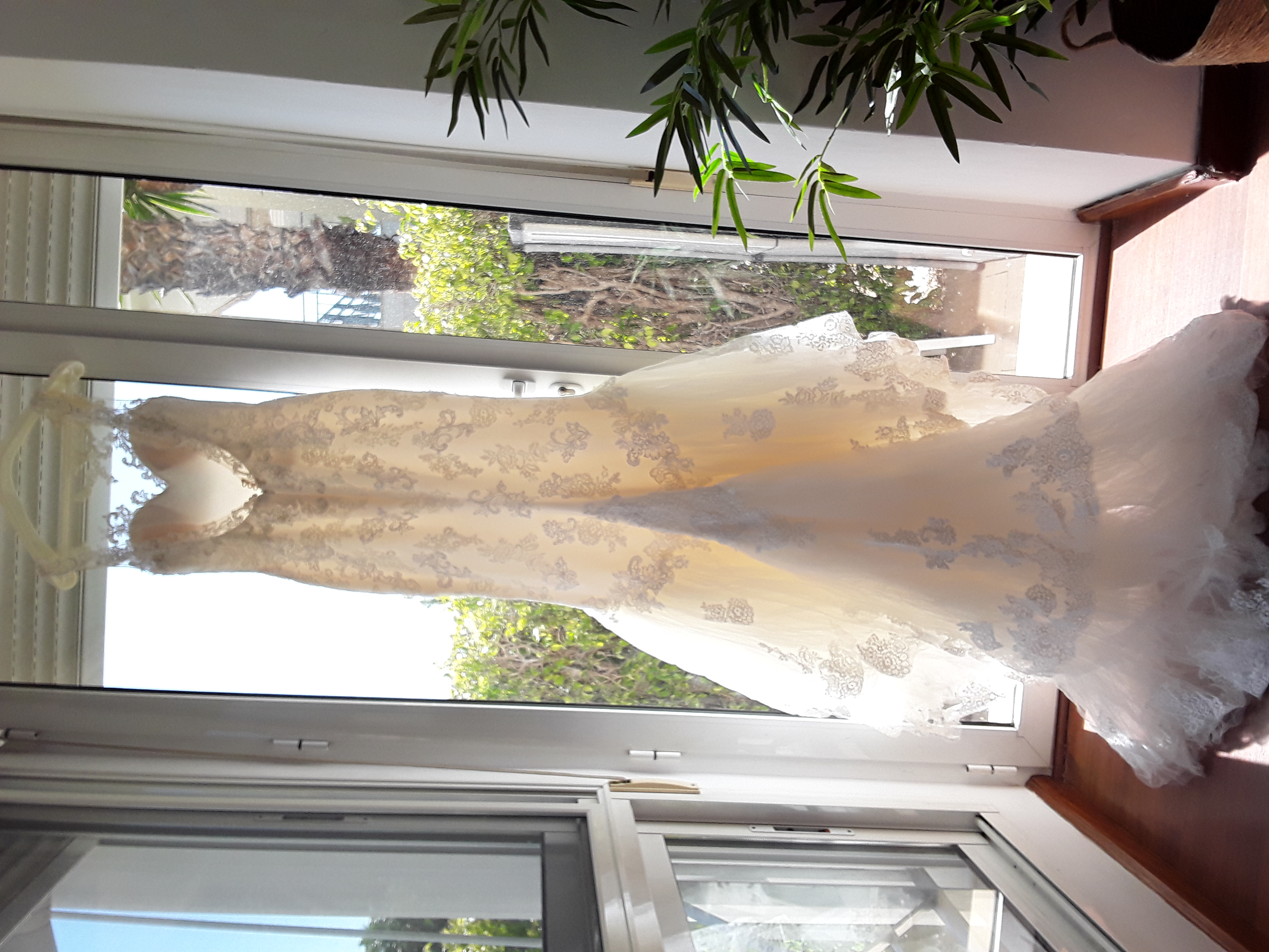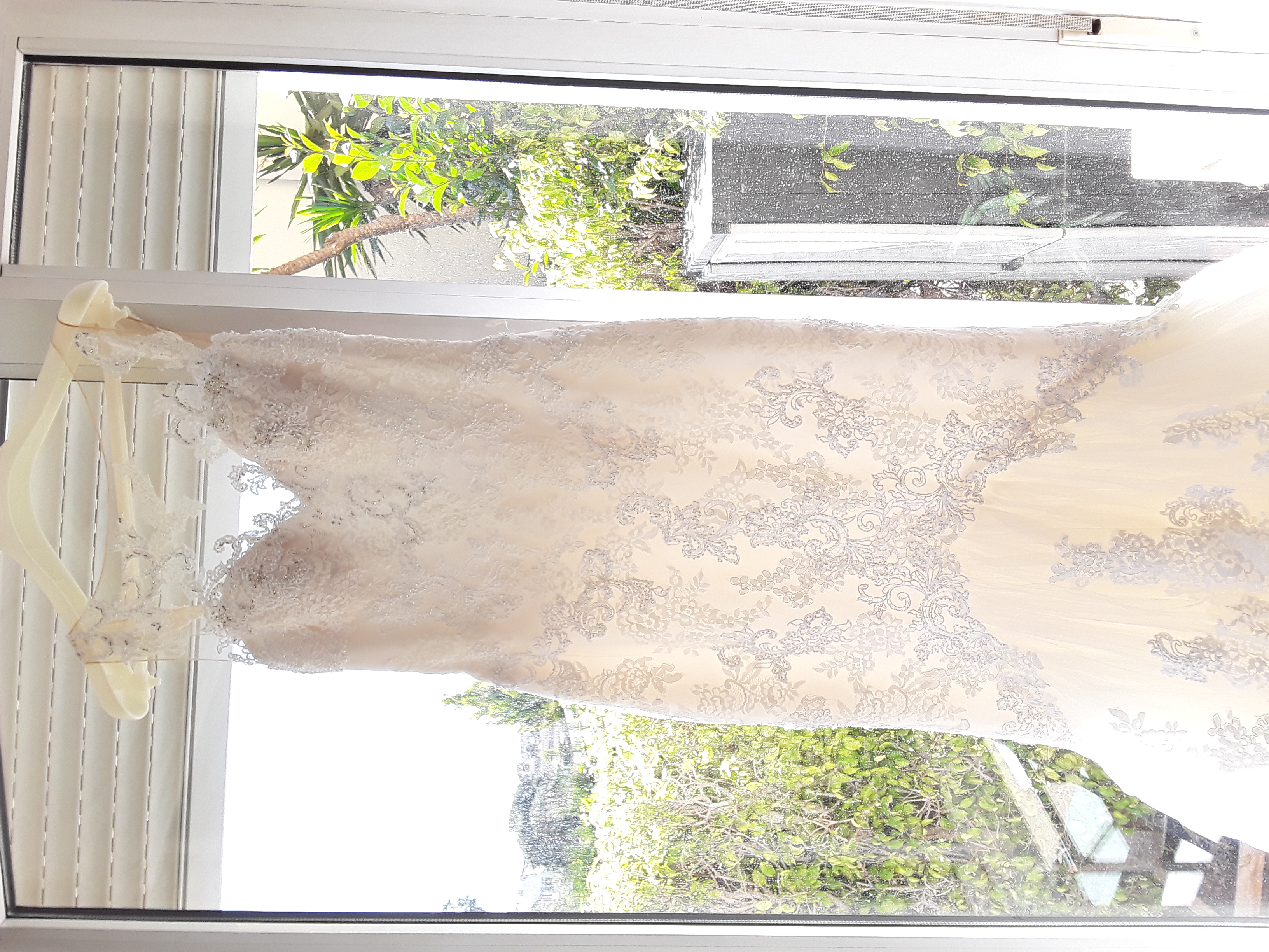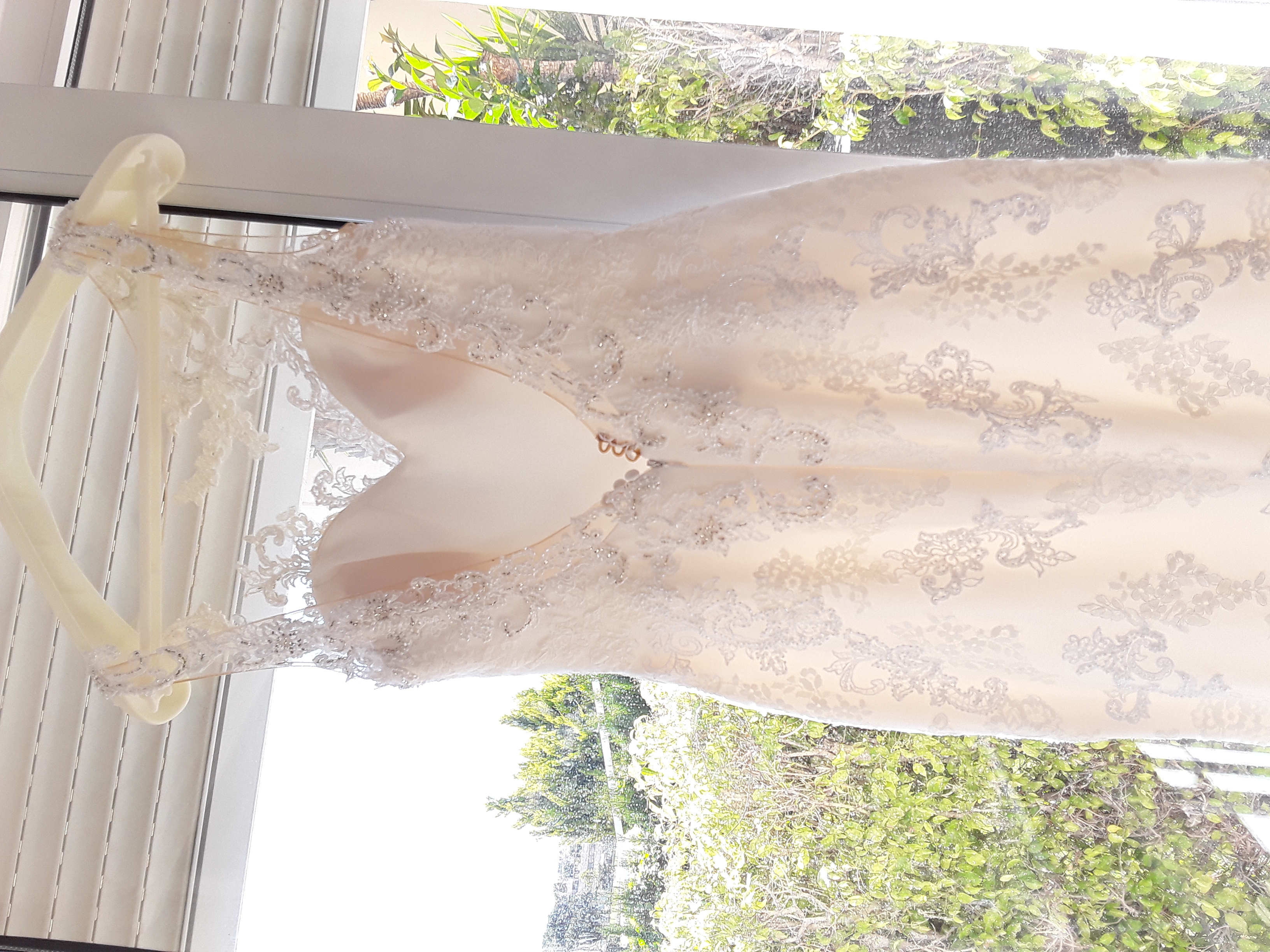 Vestido en perfecto estado, unico arreglo en la cola para que no fuera tan largo,espalda al descubierto