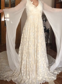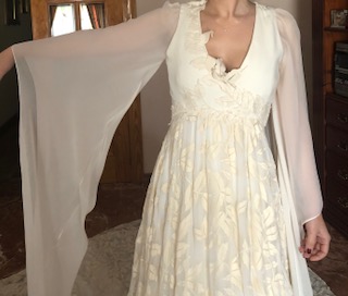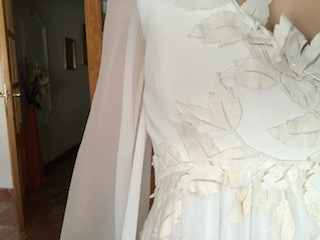 Vendo vestido de la diseñadora SOLE ALONSO NUEVO. Sin usar por tener que cambiar la fecha de boda. Es un vestido exclusivo, elegante y delicado. Mangas en seda, cuerpo en crepe de seda y el resto bordado a mano lo que lo hace aún más especial. No se ha realizado ningún ajuste previo en mi cuerpo por lo que se podría adaptar y modificar cualquier cosa que la persona desee. Un vestido valorado en 4000€ por ser hecho a medida, siendo único, y la calidad de sus tejidos.