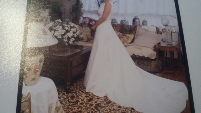 Se vende bonito vestido de novia, estado impecable.Cuenta con una gran cola y escote en la espalda, lo cual hace un efecto precioso. Se entregaría recién salido de la tintorería. La talla es la 38