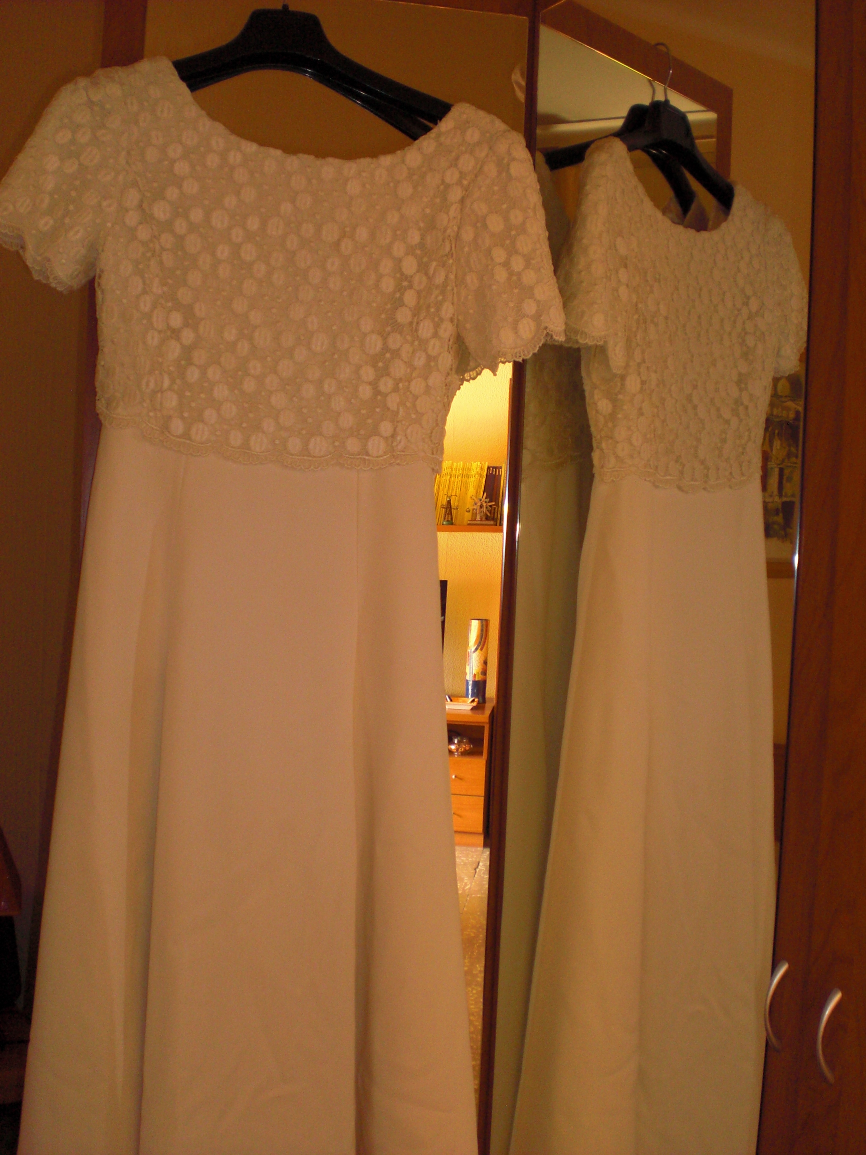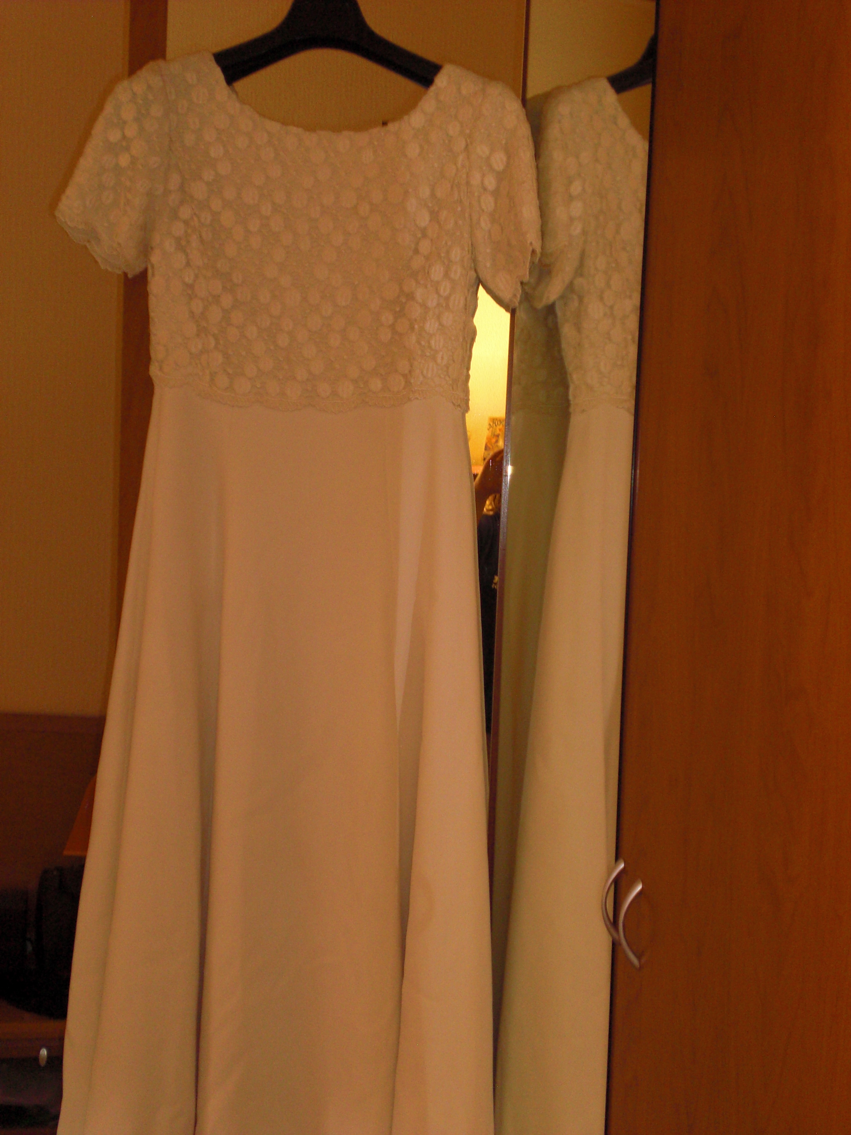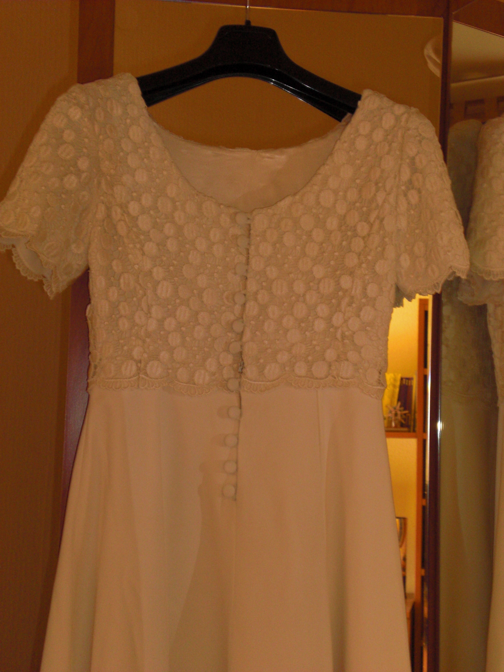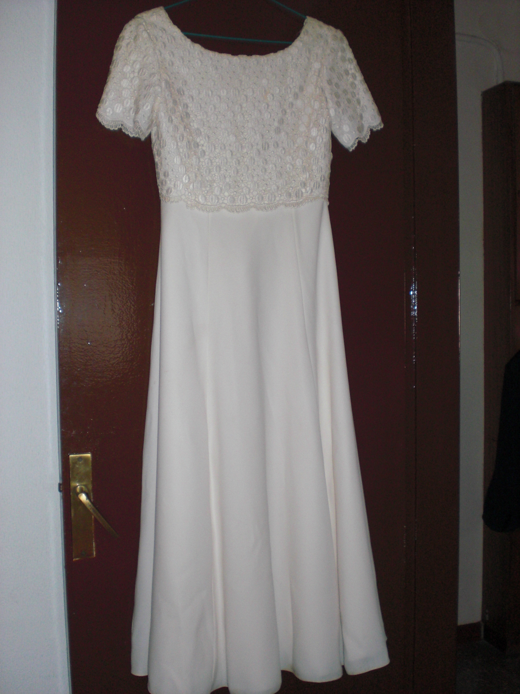 Sólo me lo puse 4 horas. El cuerpo y mangas están bordados y la falda tiene una capa de crèpe y una de seda.