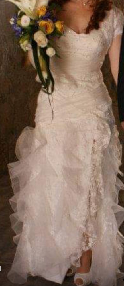 Vestido de encaje, tul y pedreria