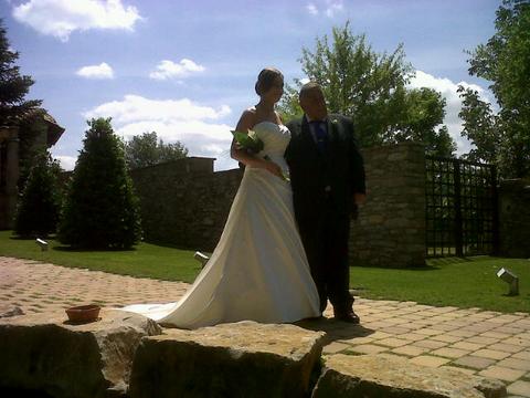 vestido de novia con solo un uso en su caja original y completamente limpio de tintoreria, palabra de honor, talla 40-42, con pequeña cola.