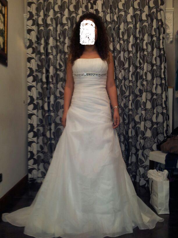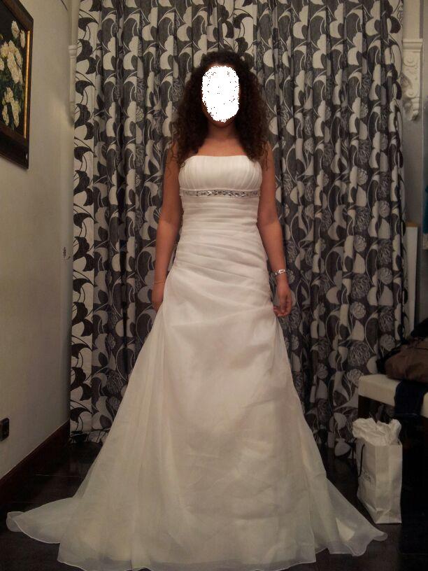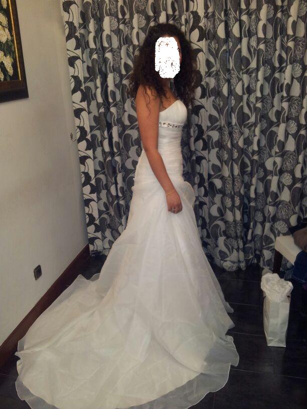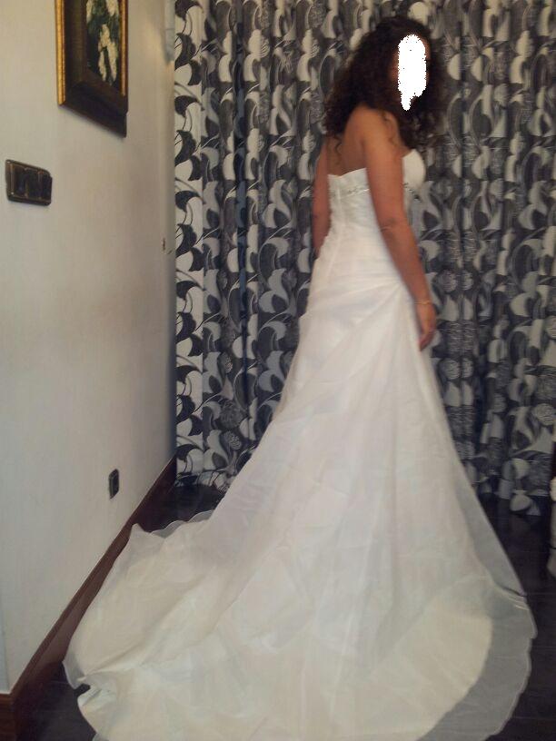 Vendo vestido de novia a estrenar, talla 40, color blanco, escote palabra de honor. Mido 1.65