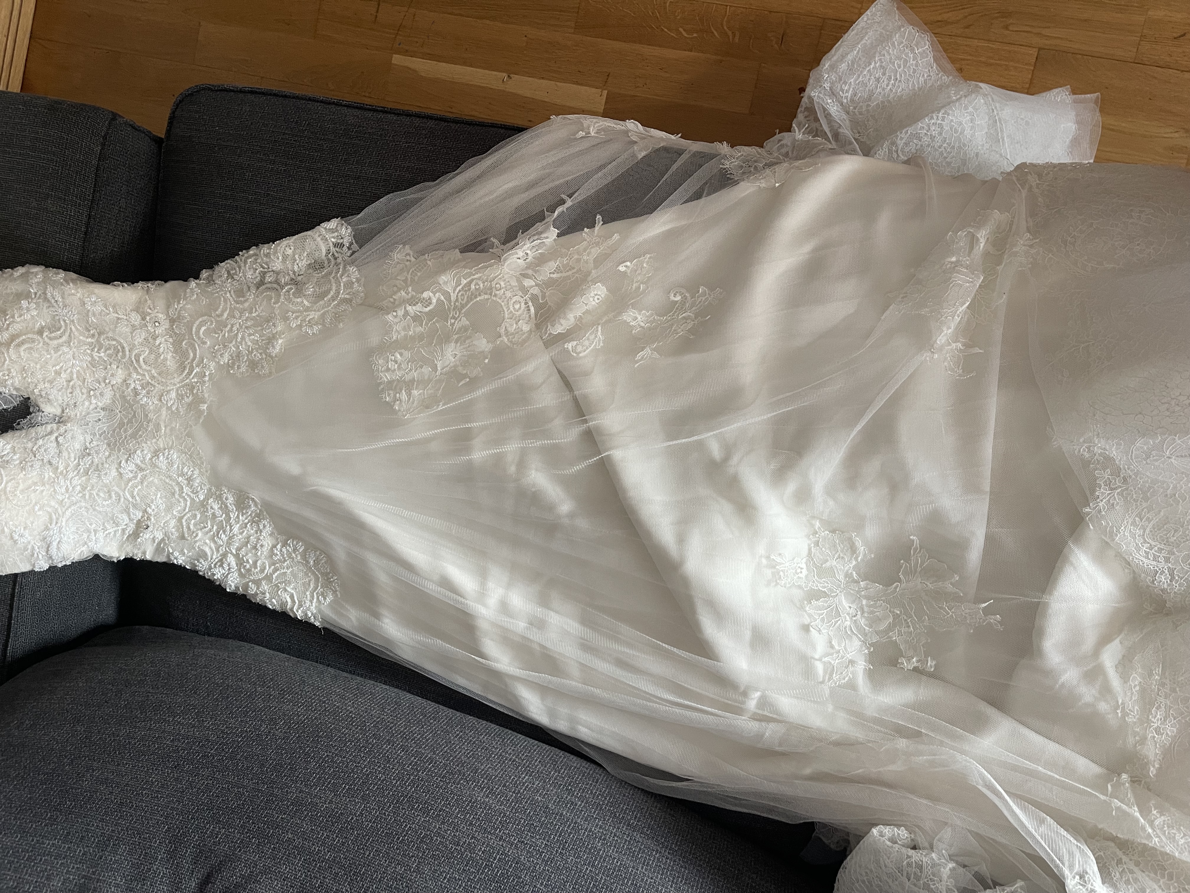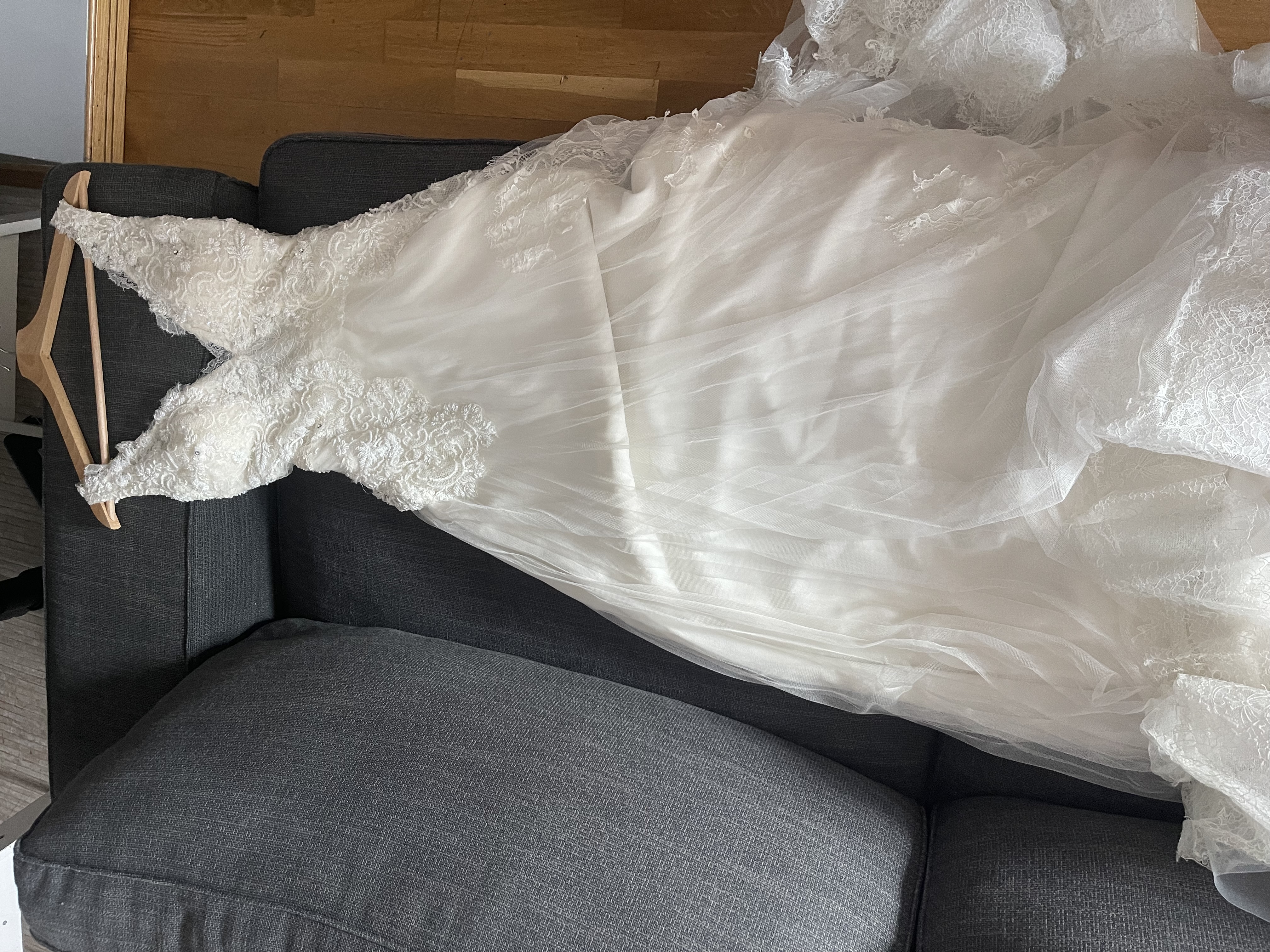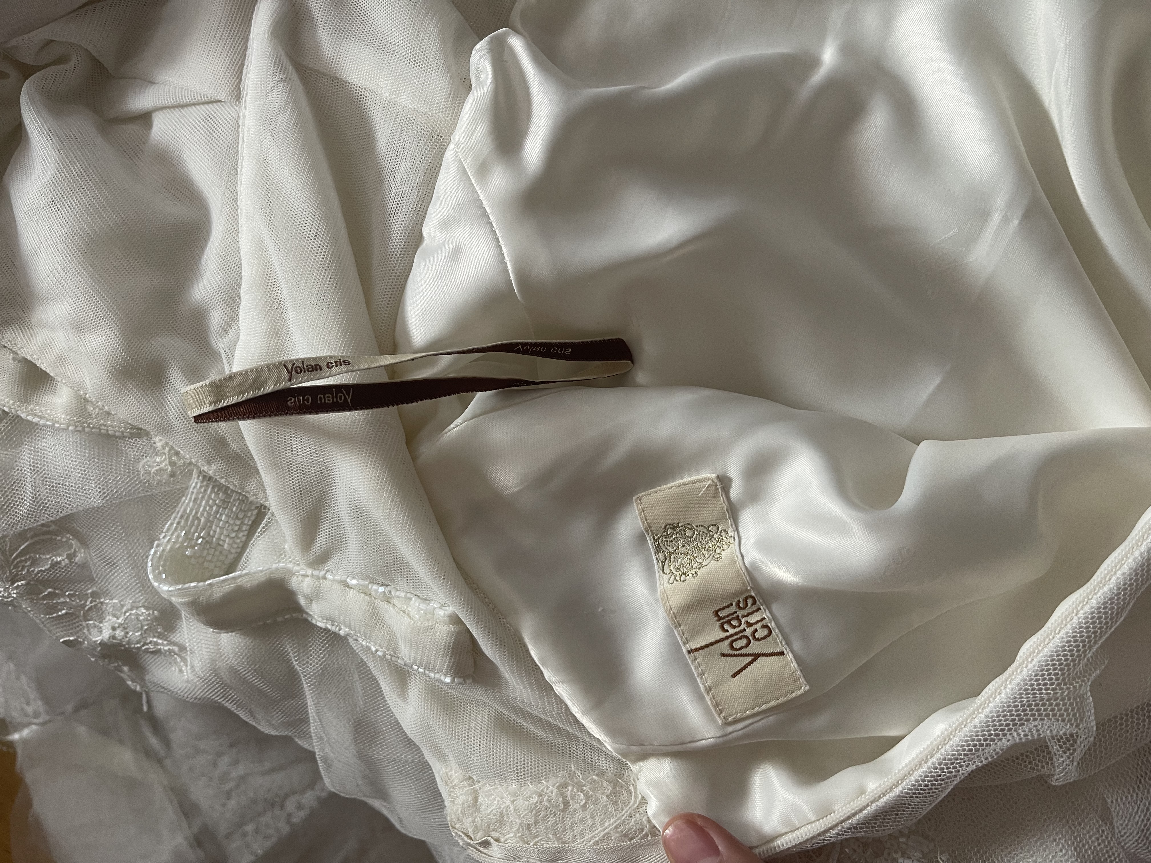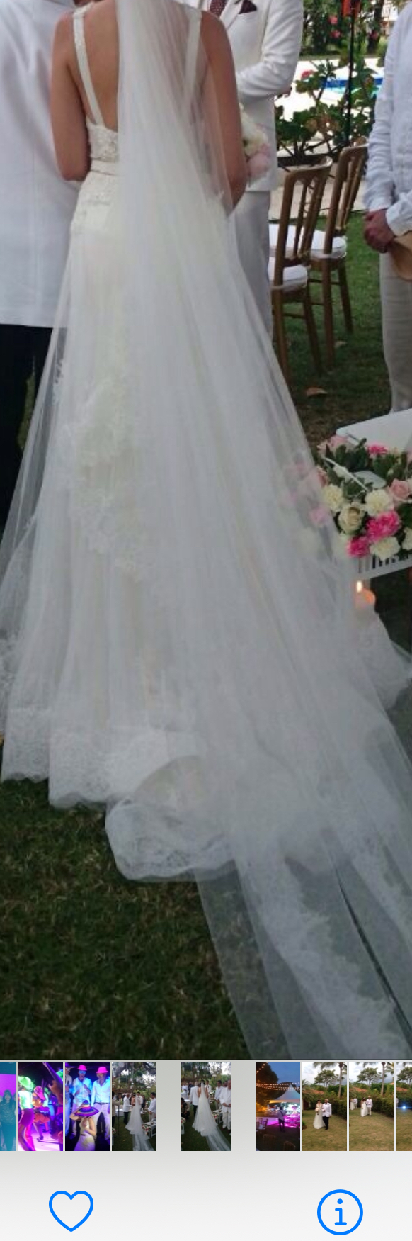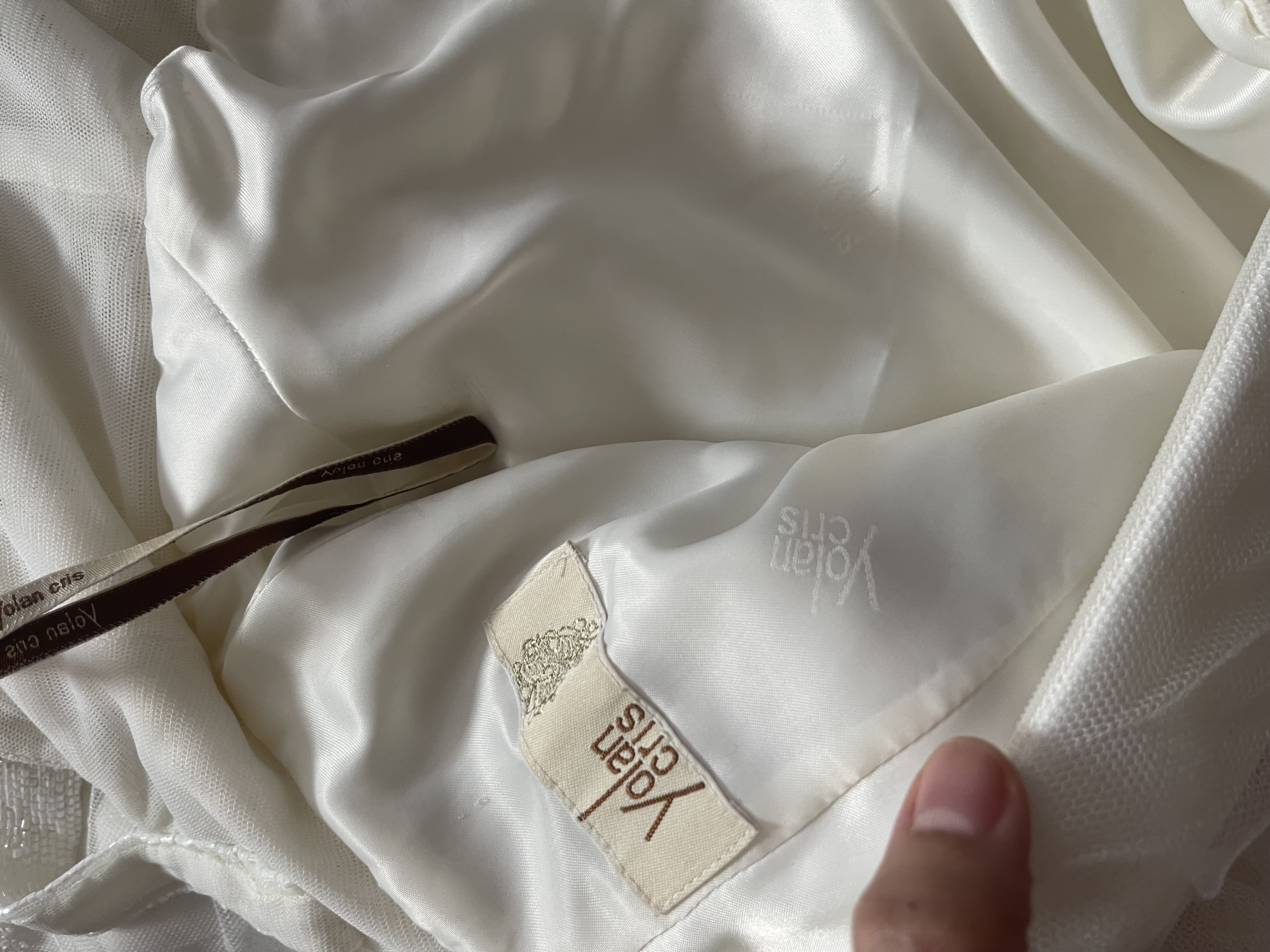 Elegante, de alta costura,detalles refinados con una ligereza perfecta para una noche cómoda y movimiento libre durante uno de los días mas importantes de tu vida.Vestido de la famosa Casa YolanCris en el cual los detalles no faltan junto con ese toque de Gala y Elegancia que caracteriza a esta casa.