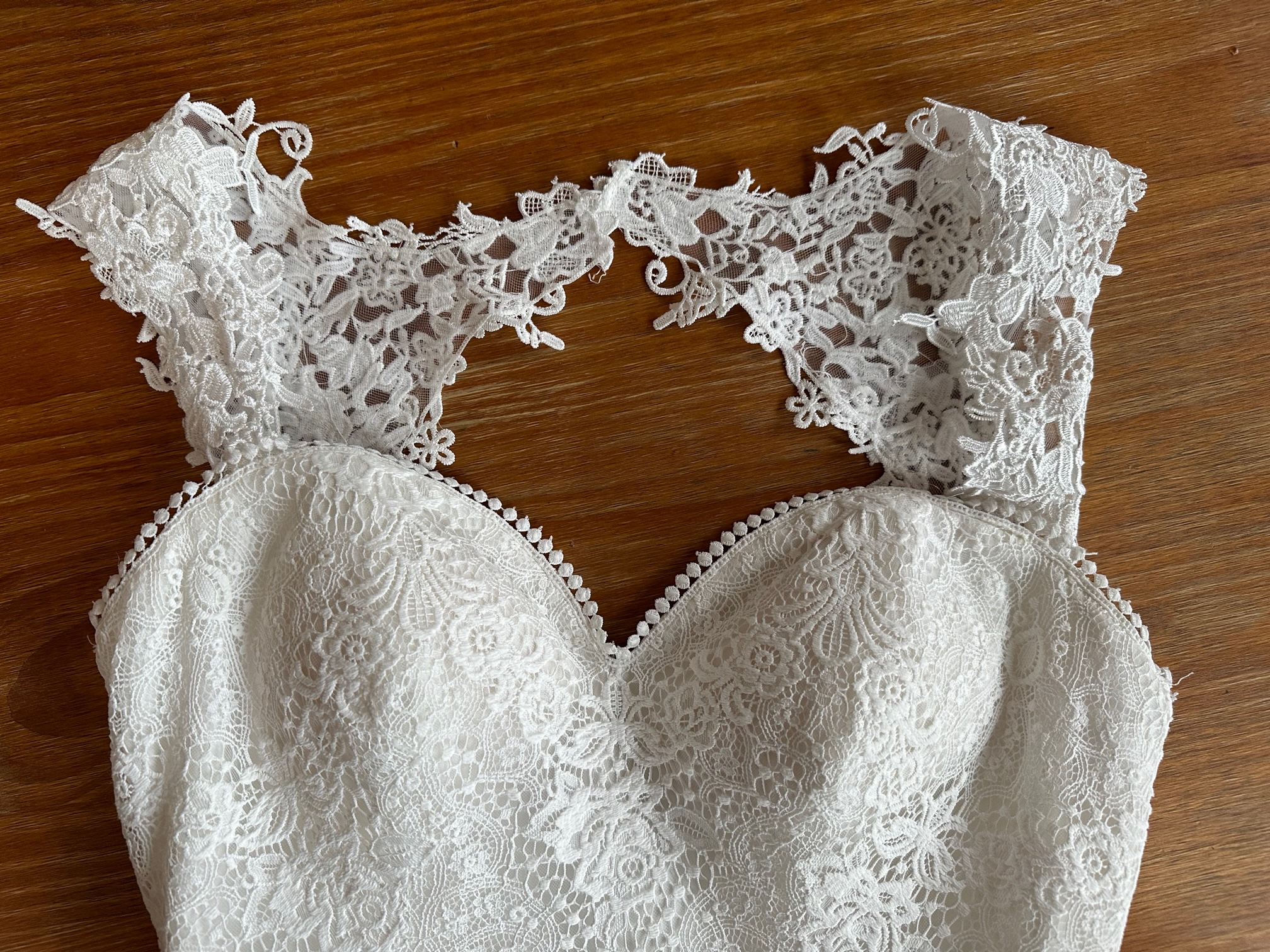Magnifique qualité, tout en dentelle, avec une belle traine.