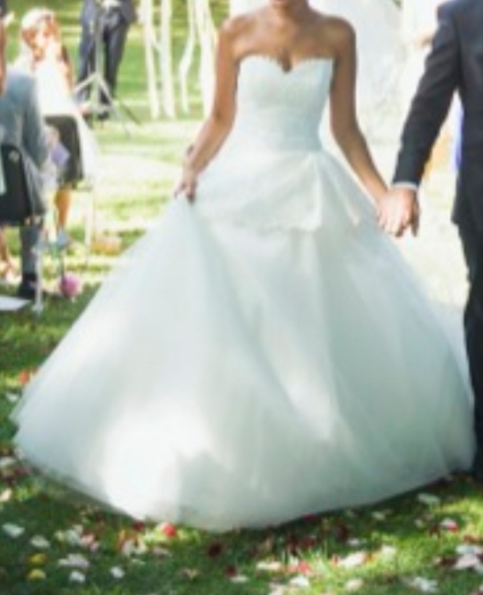 CETTE ROBE EST COMPOSÉ D’UN JOLI BUSTIER FORME CŒUR EN DENTELLE DÉLICATE ET QUI DÉBORDE SUR LA JUPE DE TULLE LÉGÈRE. LA JUPE EST ENTIÈREMENT COMPOSÉE DE SUCCESSION DE TULLE QUI LUI CONFÈRE UNE VRAIE LÉGÈRETÉ À LA ROBE. SANS JUPON C’EST UNE ROBE NO-MERINGUE. POUR ÊTRE LA PLUS BELLE POUR VOTRE MARIAGE CHOISISSEZ CETTE ROBE PRINCESSE. ROBE ACHETER À 3400 EUROS QUE JE REVENDS 1500 EUROS.