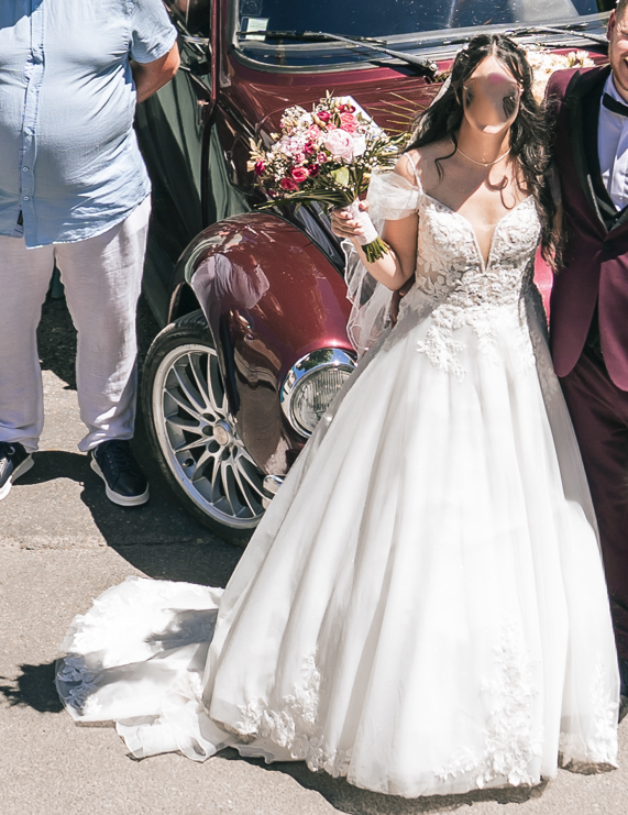 Je vends ma magnifique robe de mariée de la marque Nicole Milano, achetée en 2024, accompagnée de son jupon.