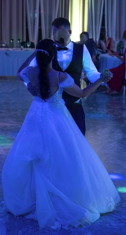 La robe possède une longue traine qu’il est possible d’attacher pour danser ou se déplacer (j’ai même pu valser avec !). La couturière a ajouté des systèmes d’attaches cachés sous la jupe à ma demande afin de pouvoir danser plus aisément tout en restant esthétique.
