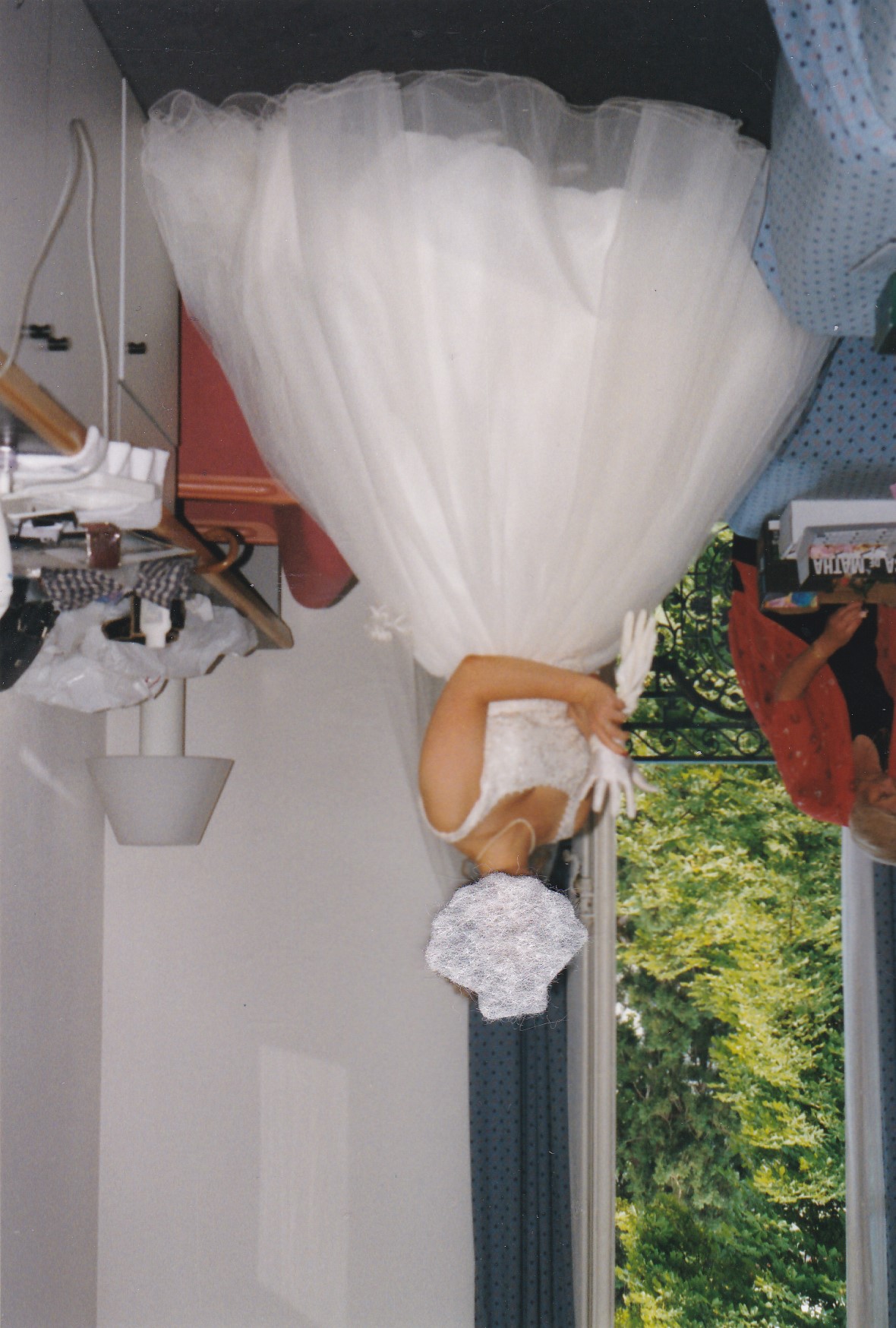 jupe très large en satin recouvert de tulle avec traine vers l’arrière