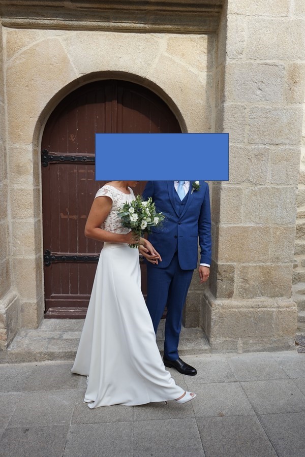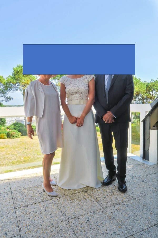 Robe de Mariée Maison Floret Jupe Stuart et Top Edward avec dos en V. Parfait état, nettoyée dans une teinturerie spécialisée. Taille 38, je mesure 1m72. Prix d’origine : 3300€ (facture disponible)