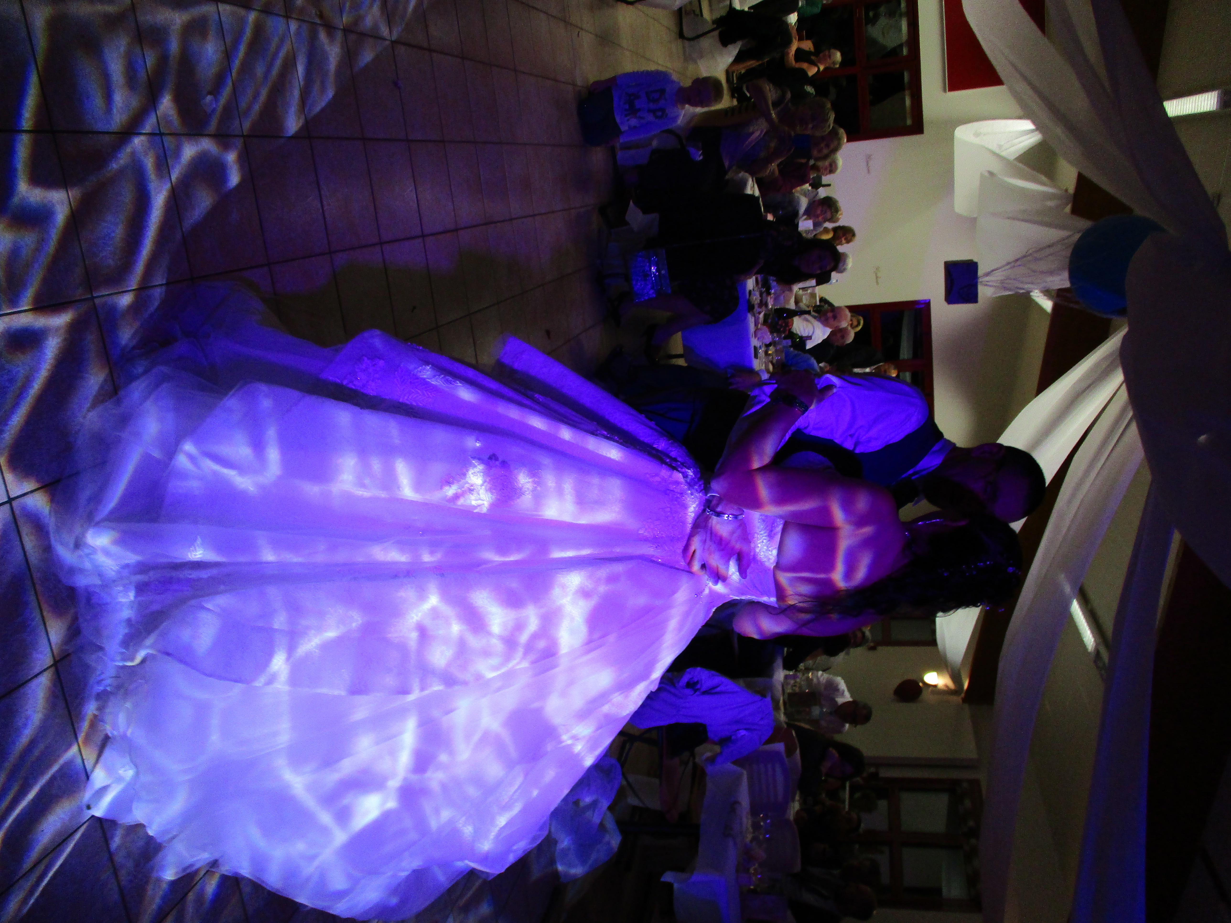Robe proncesse dentelle or argent avec arceau et traîne.