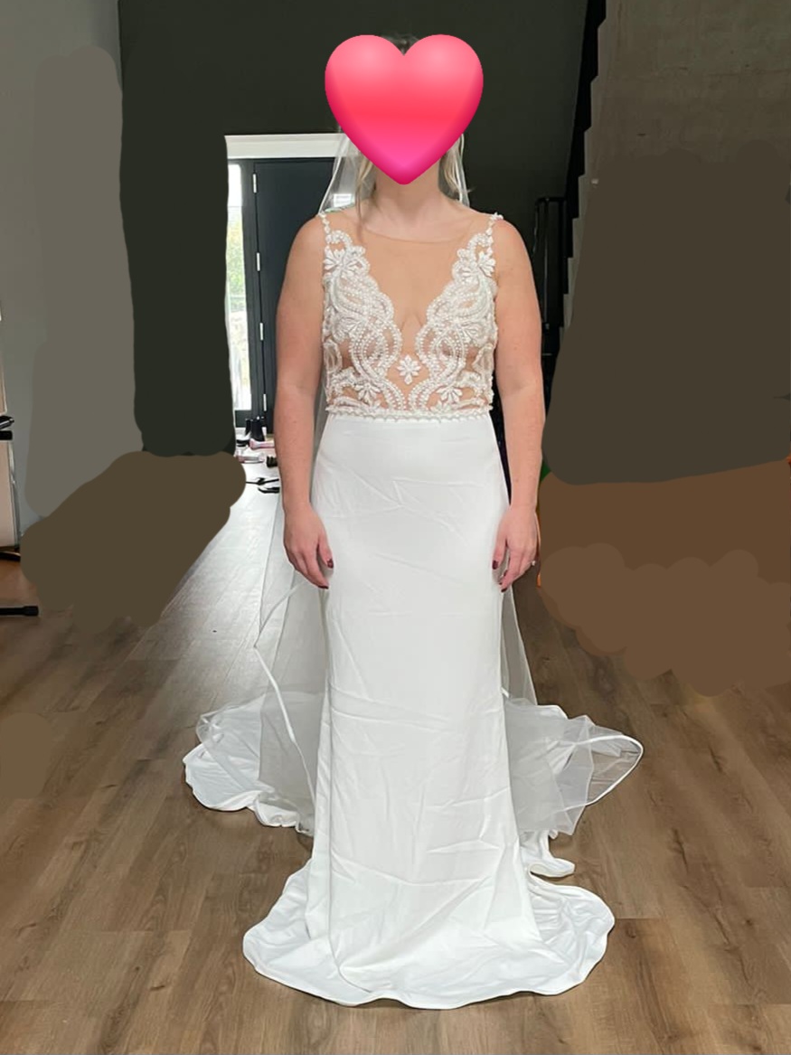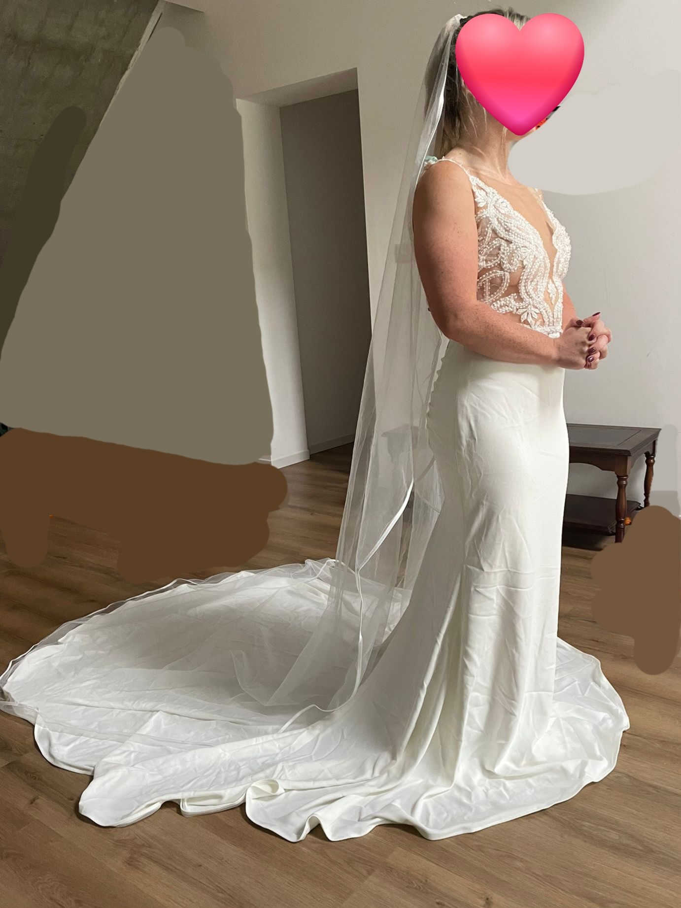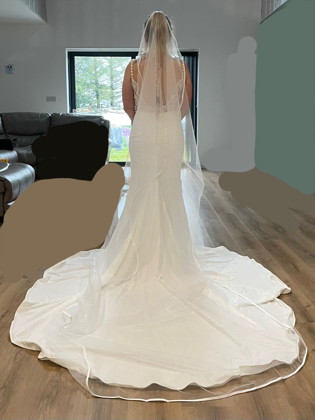 A beautiful ivory Abella dress, uk size 10, with a lovely long train, like new as it has only been tried on. Can be collected or posted out. Veil not included.