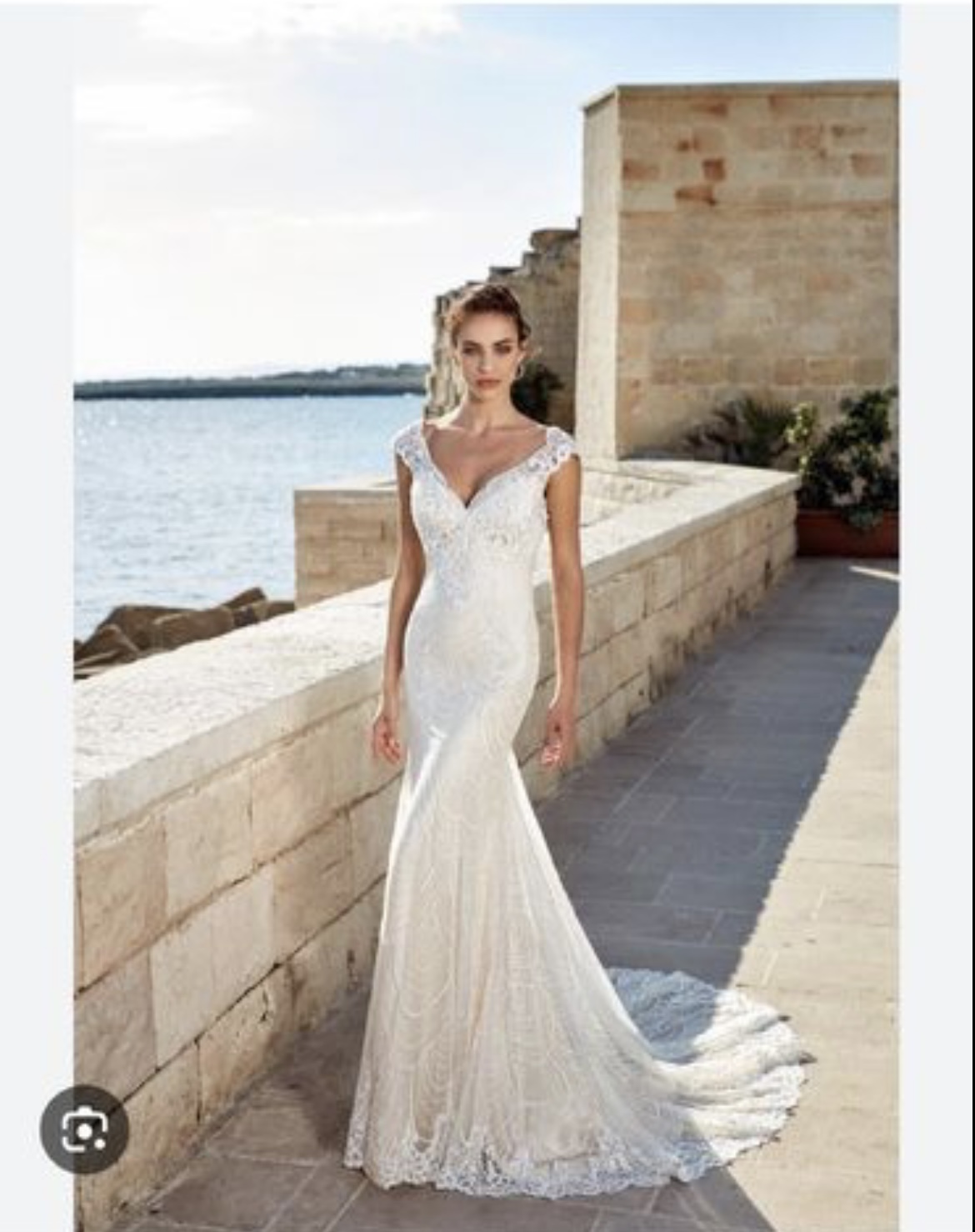 Beautiful Italian Eddy K Fabiola Dress. Never been worn or altered. Bought for €2500 and brought in from Italy. Size EU 16 but more like an Irish size 14. Has a beautiful silk slip with stunning lace overlay. Ivory.