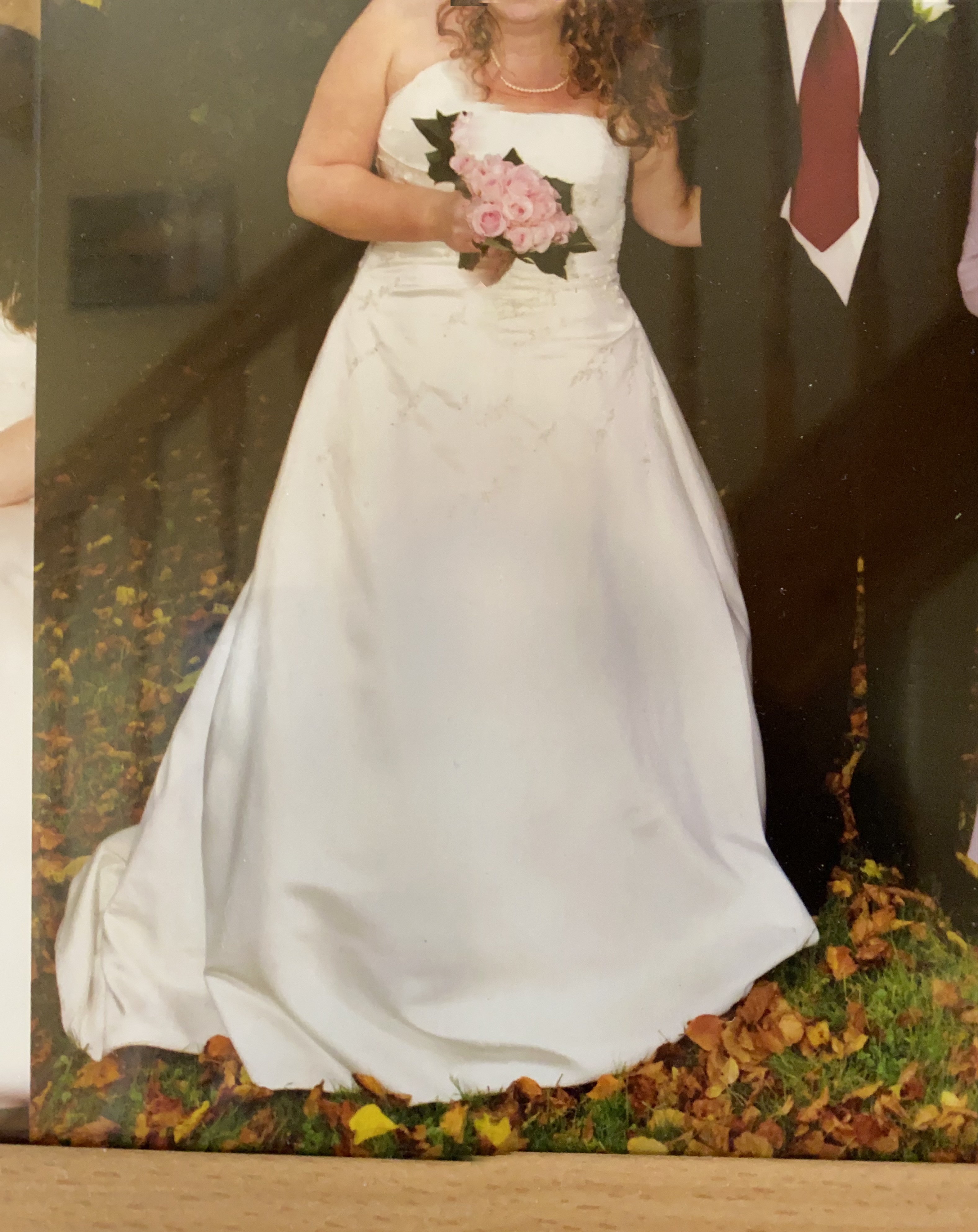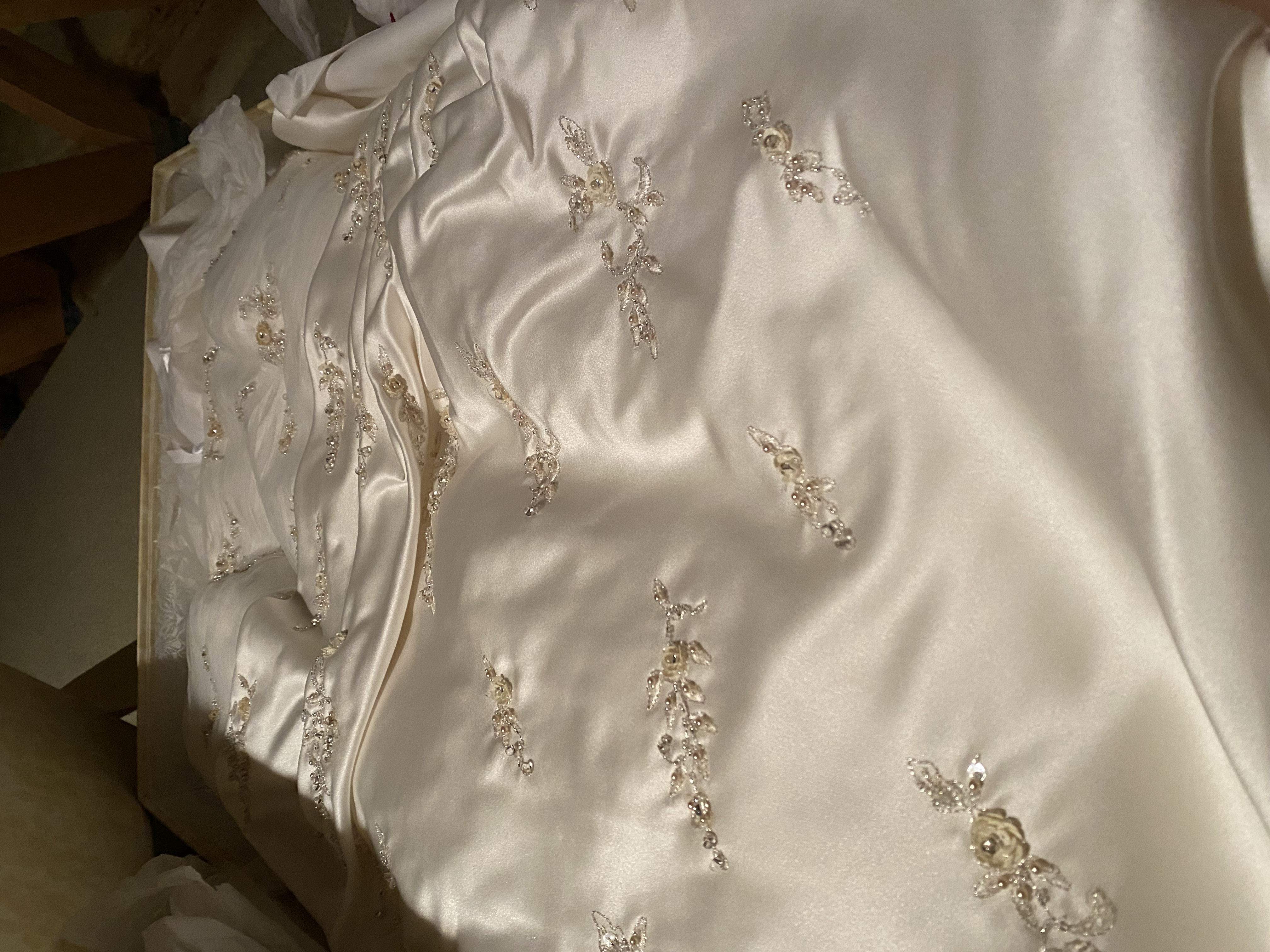This is a fabulous wedding dress which was dry cleaned and a cost of €250 and stored in the box since then