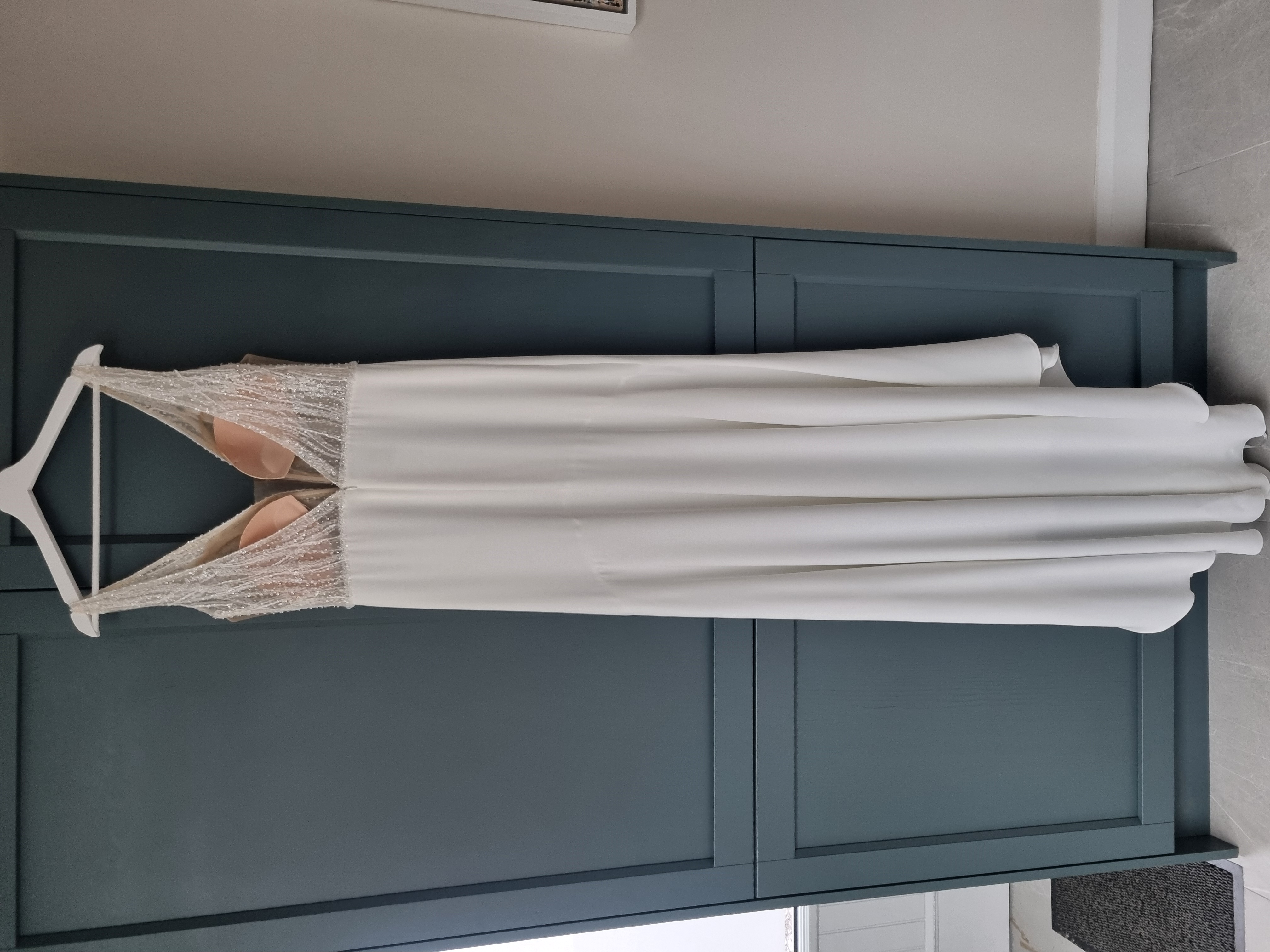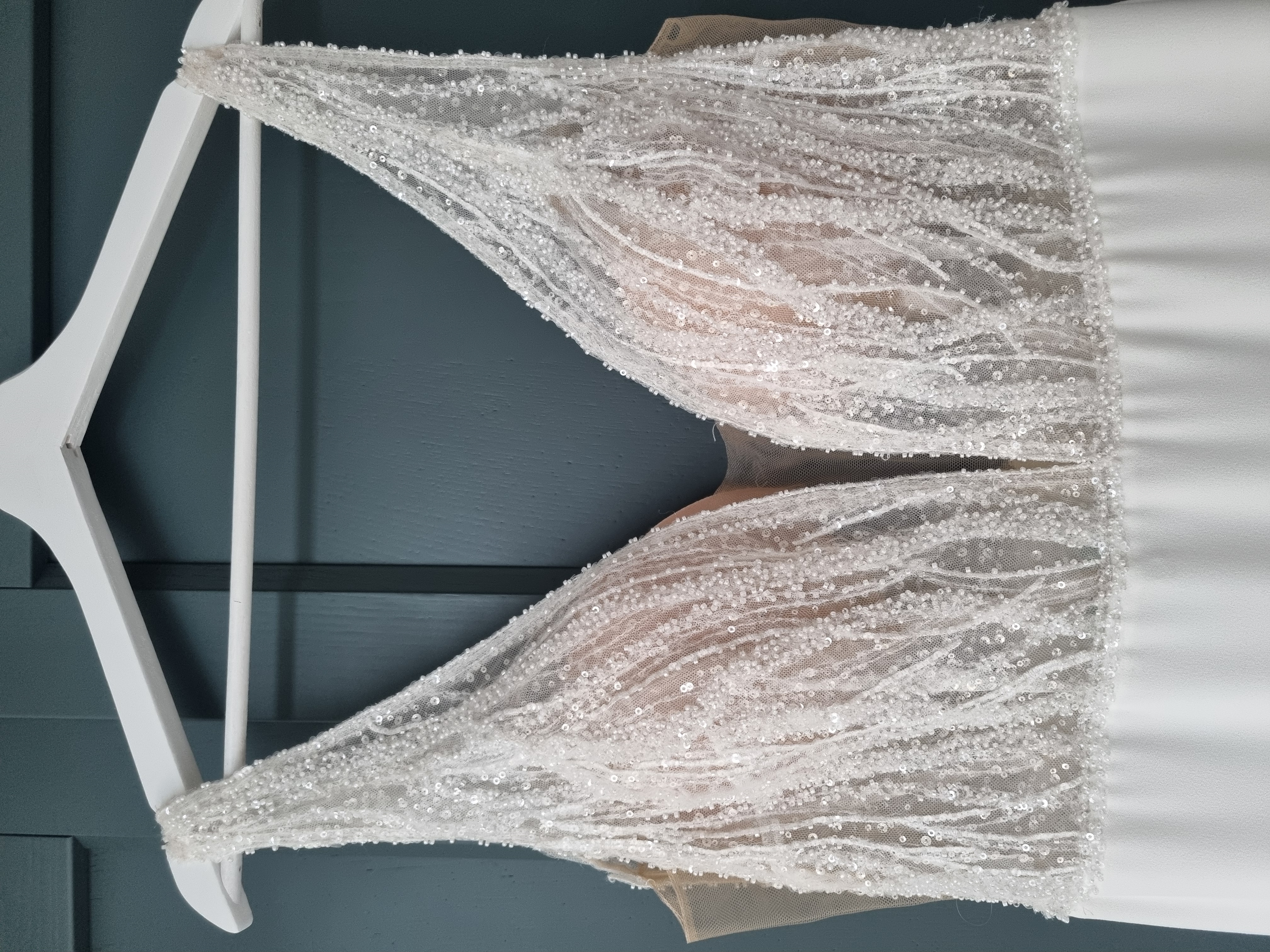 Professionally deep cleaned, like new, BETSY dress by Enzoani, Love range. Bought in a size 16 (small sizing) and altered to fit size 12- 14. Colour: Ivory.