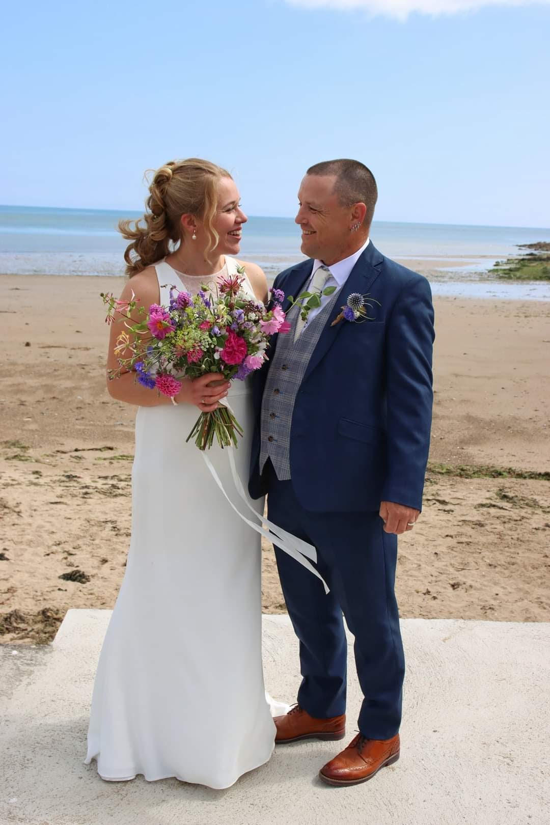 Worn once, dry cleaned. Altered from wedding dress size 16 to a 14 and train shortened. Beautiful and comfortable dress. Stunning lace detail and buttons at back. Email me for more photos and video.