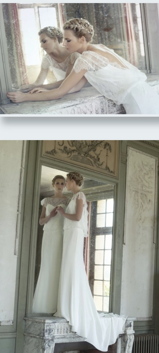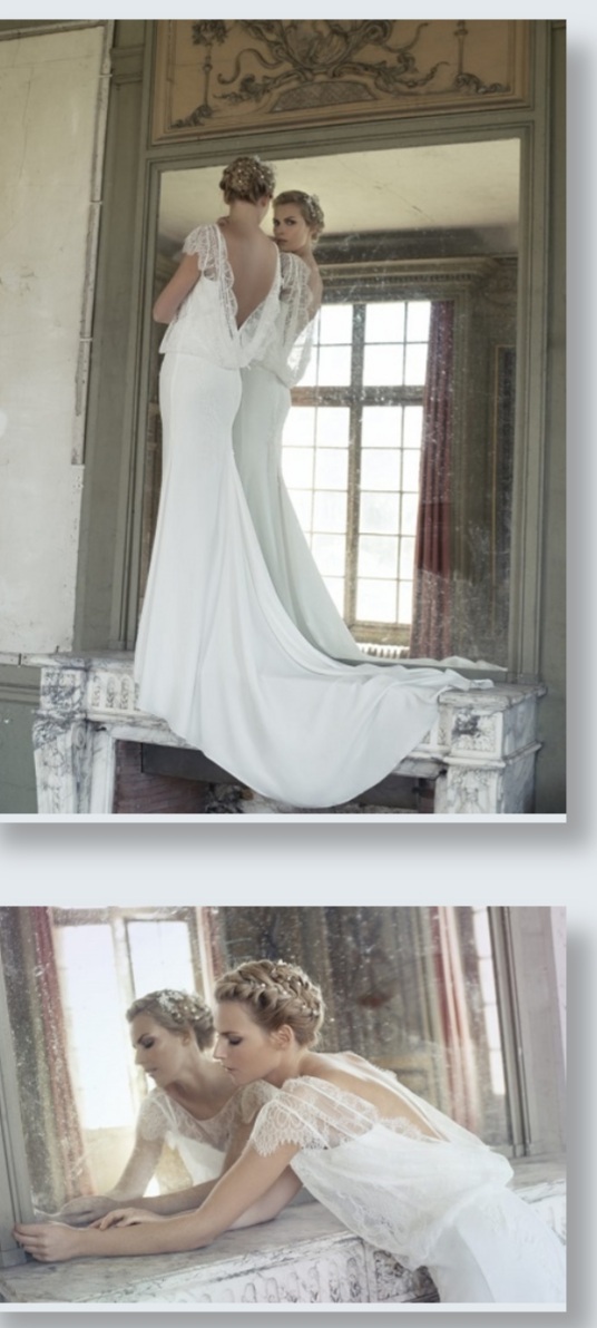 Beautiful French vintage wedding dress, lace detail with open back.