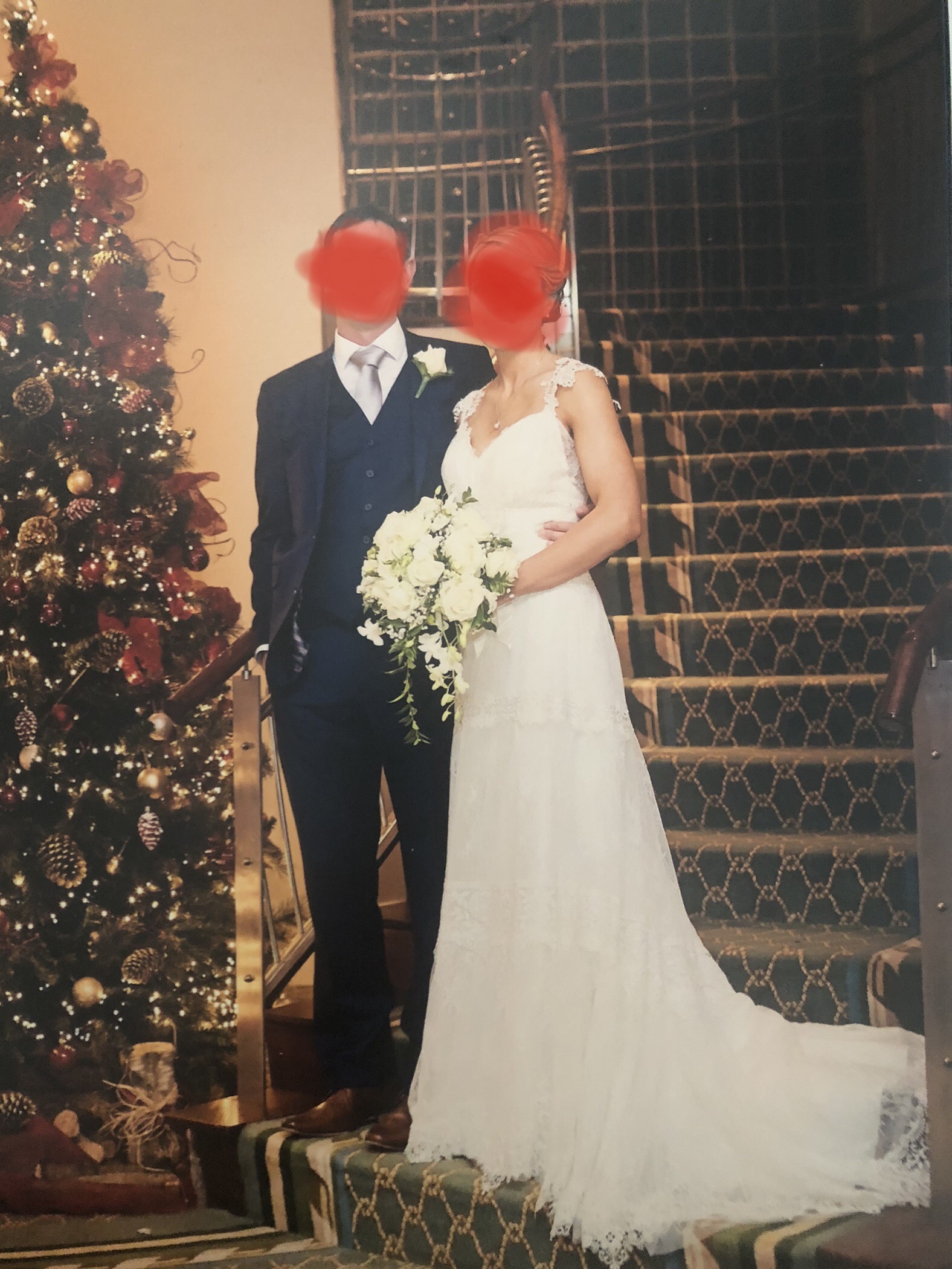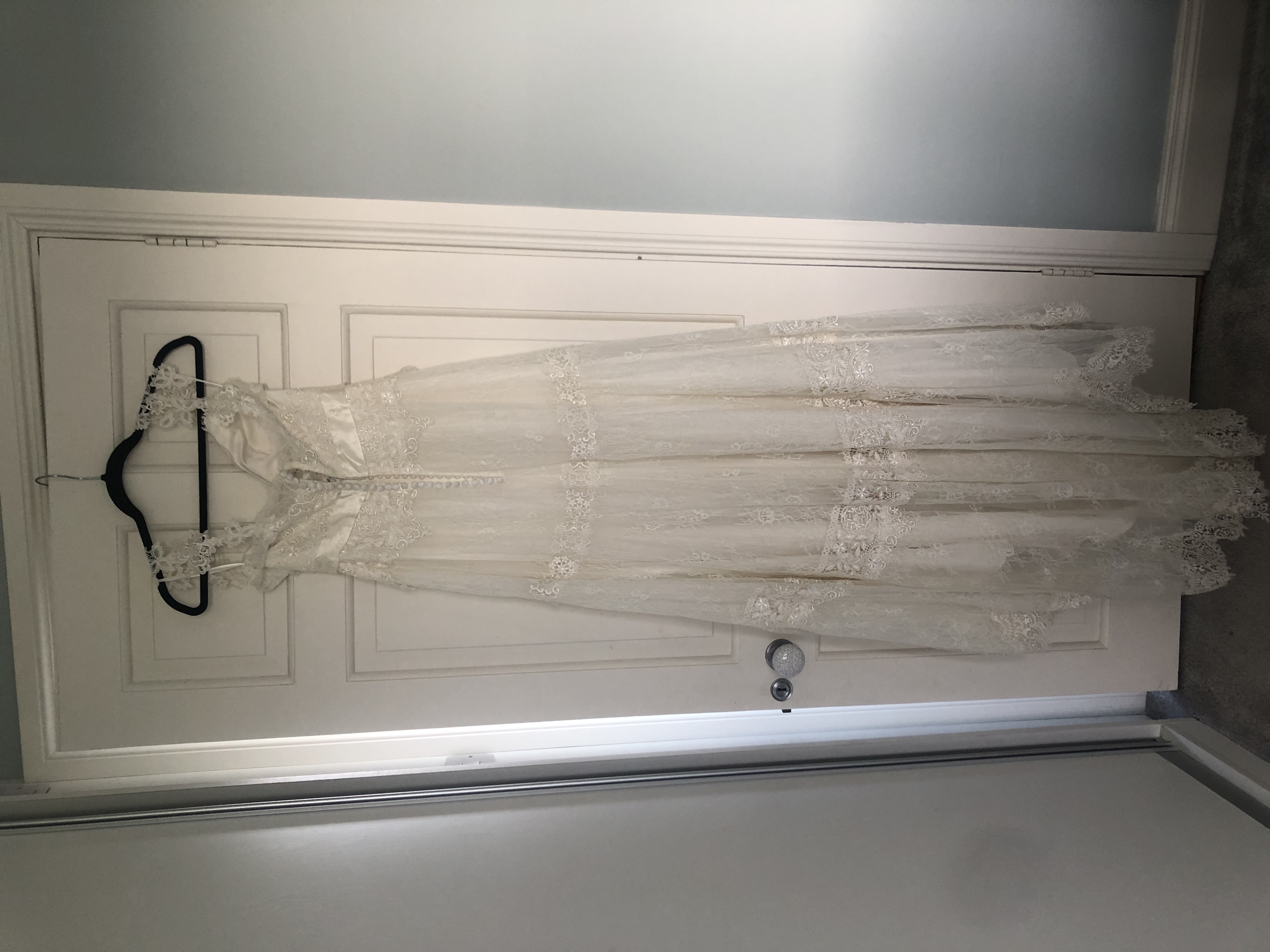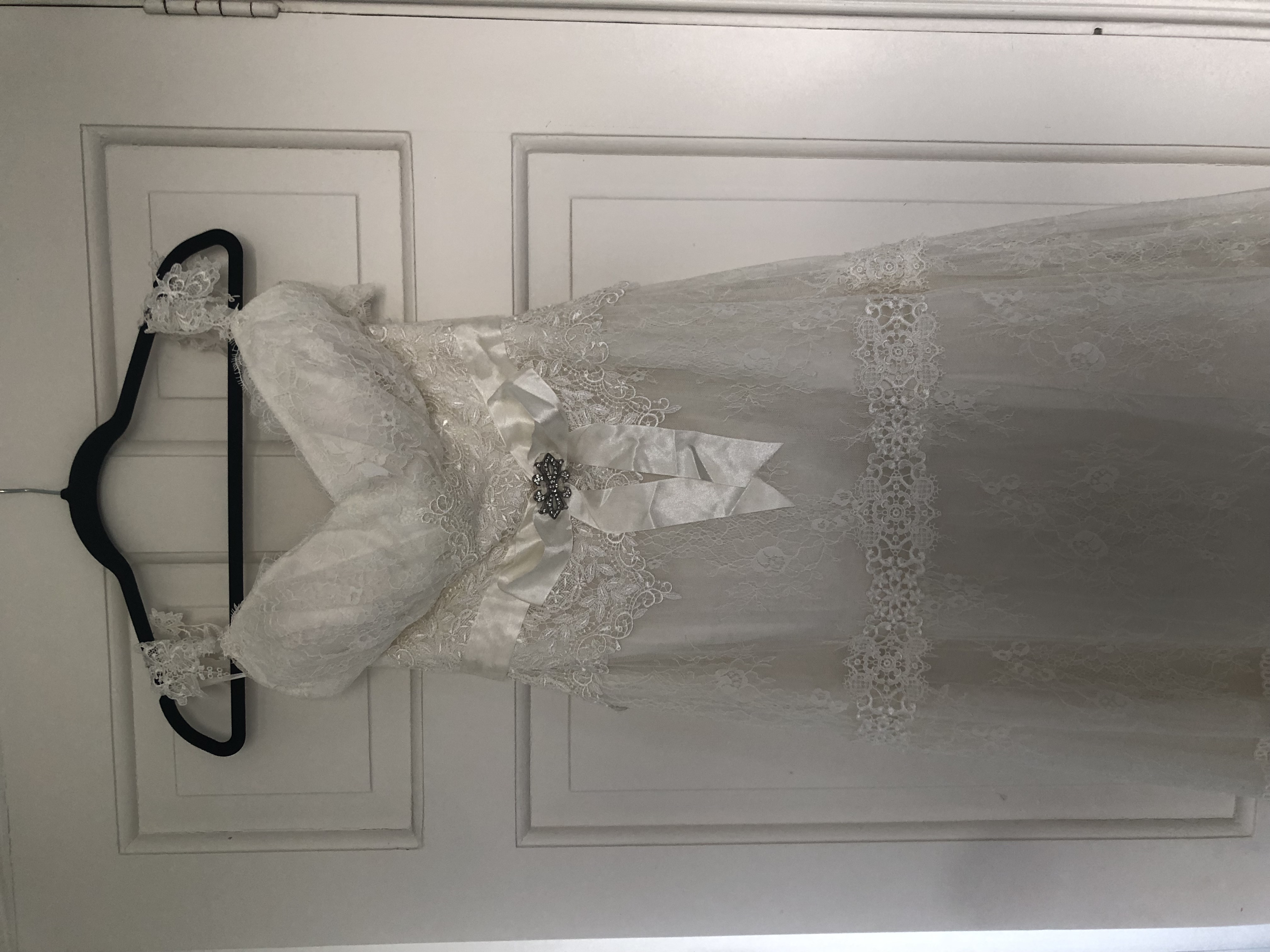 Beautiful Novia D’art lace wedding dress. Very comfortable to wear, delicate lace straps. Elegant and effortless, such an understated dress.