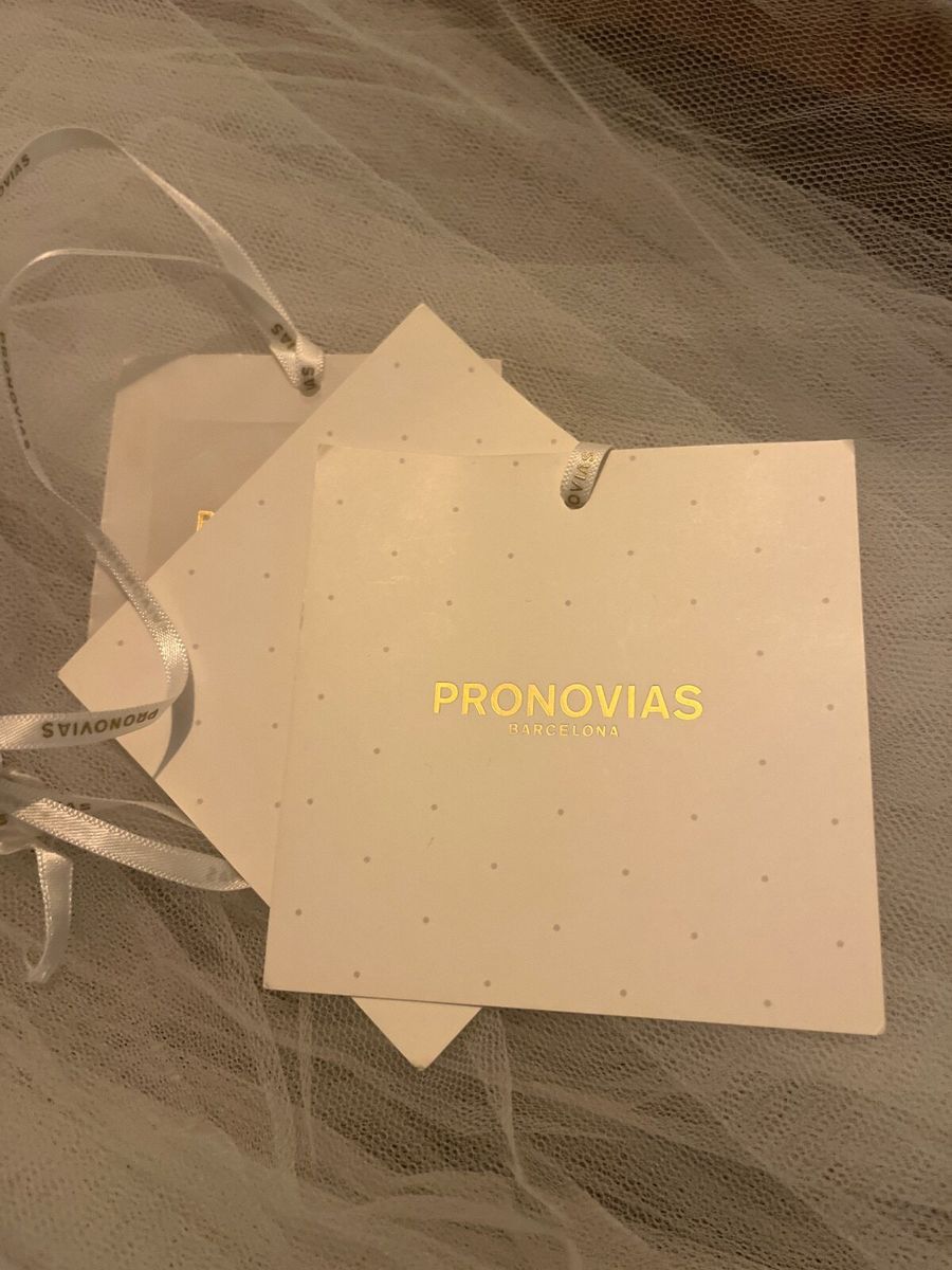 Pronovias wedding dress, off-white colour. Worn once in perfect condition, dry cleaned. Earrings as a gift